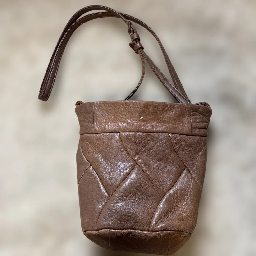 gentenブラウンレザー 巾着型ショルダーバッグ