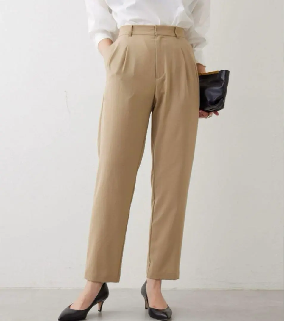 【-3kg見えパンツ】ジャージーテーパードパンツ ベージュ