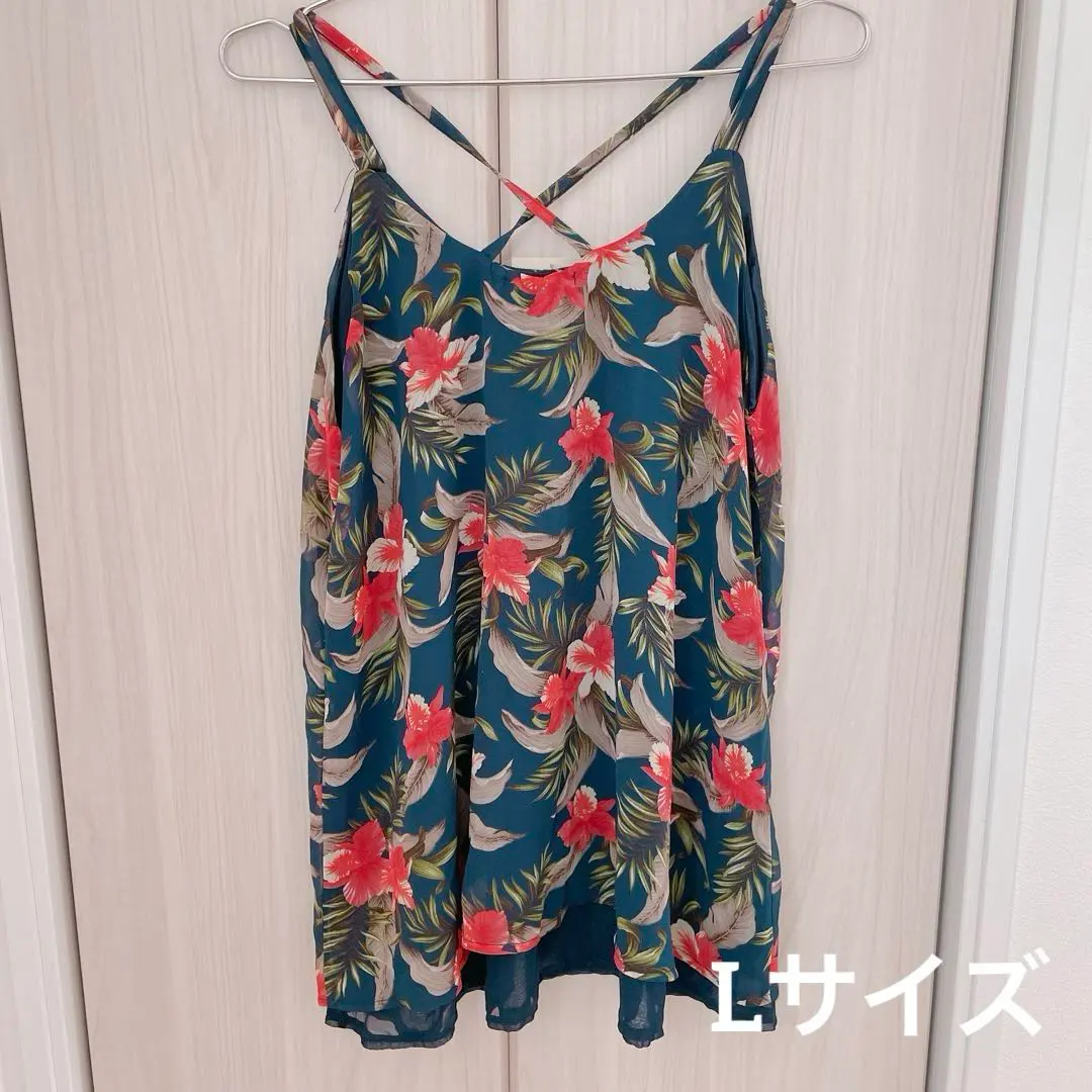 タグ付き ✨️キャミソール 花柄 シースルー ネイビー 夏 Lサイズ