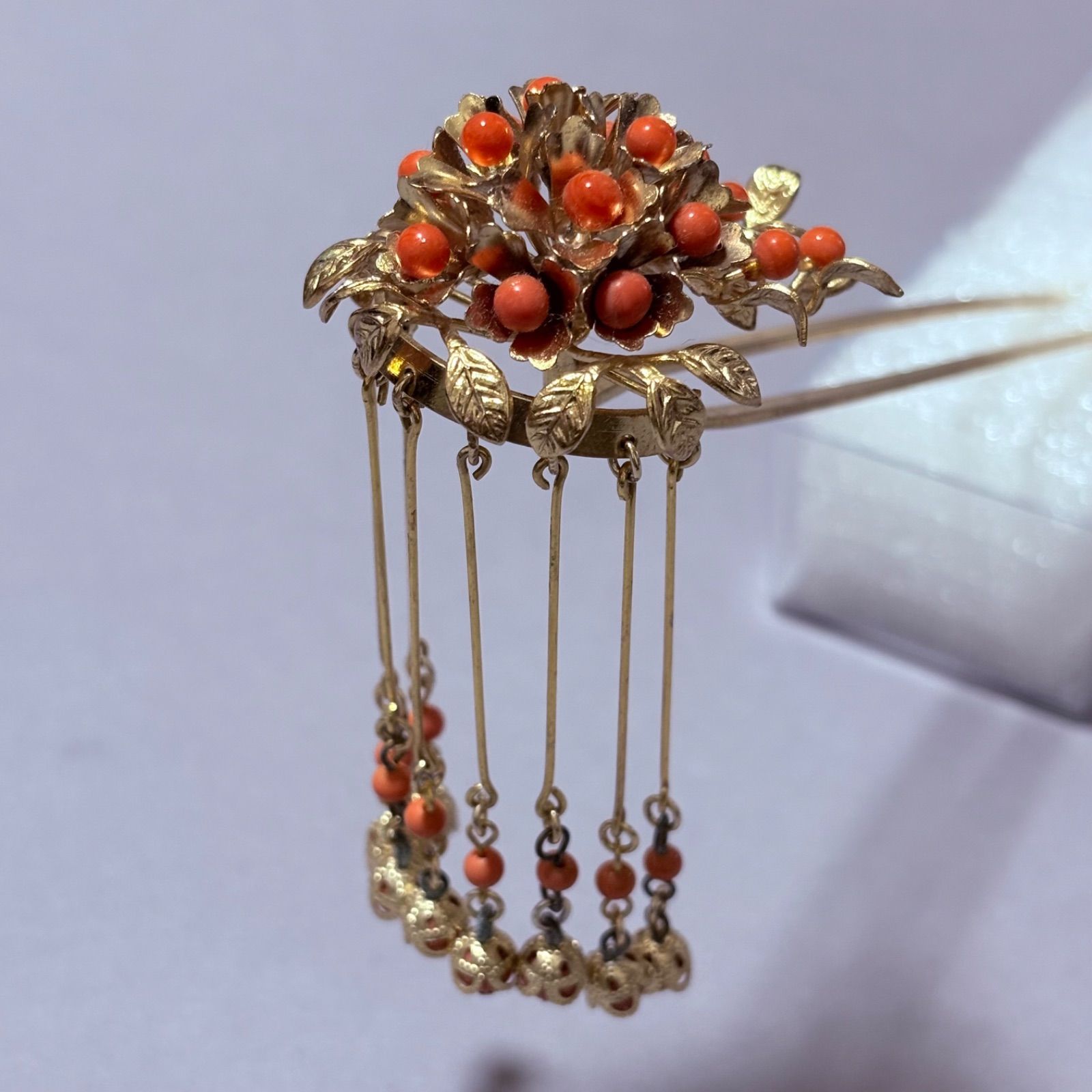 【ビラかんざし】簪・前挿し・髪飾り・珊瑚風・成人式かんざし・振袖簪・コスプレ・かみかざり