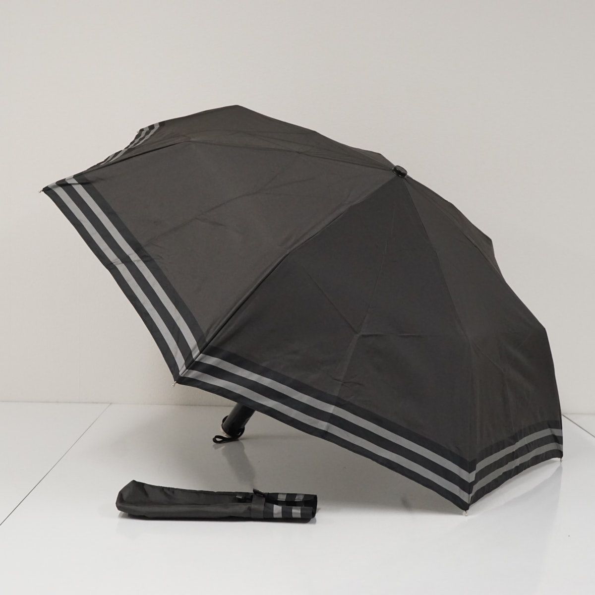 折りたたみ傘 LANVIN en Bleu ランバンオンブルー USED美品 メンズ 紳士 ボーダー グレー 自動開閉 55cm FA9554