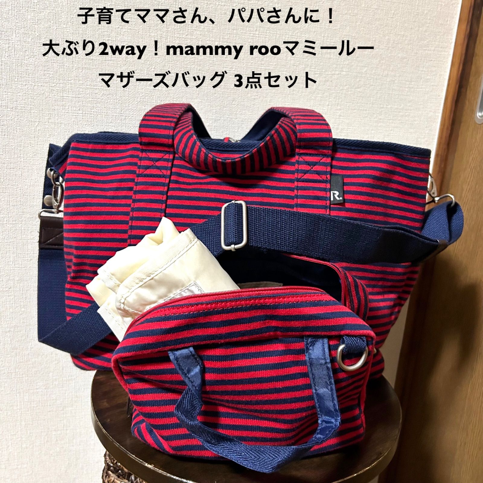 大ぶり2way!mammy rooマミールー マザーズバッグ 3点セット ROOTOTEルートート 中古古着ショルダー&手提げバッグ +ミニバッグ(おむつポーチ)+おむつ替えシート付き