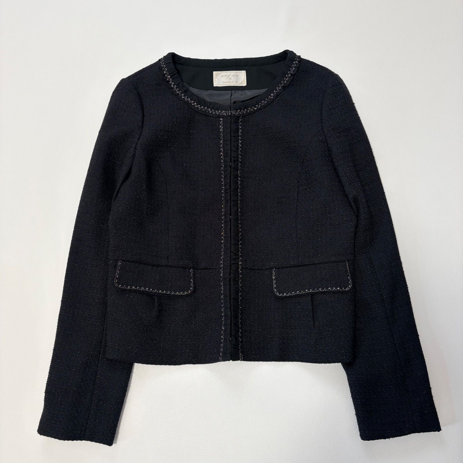 Any SiS ラメ入りツイード ノーカラージャケット ブラック 3 美品 Lサイズ