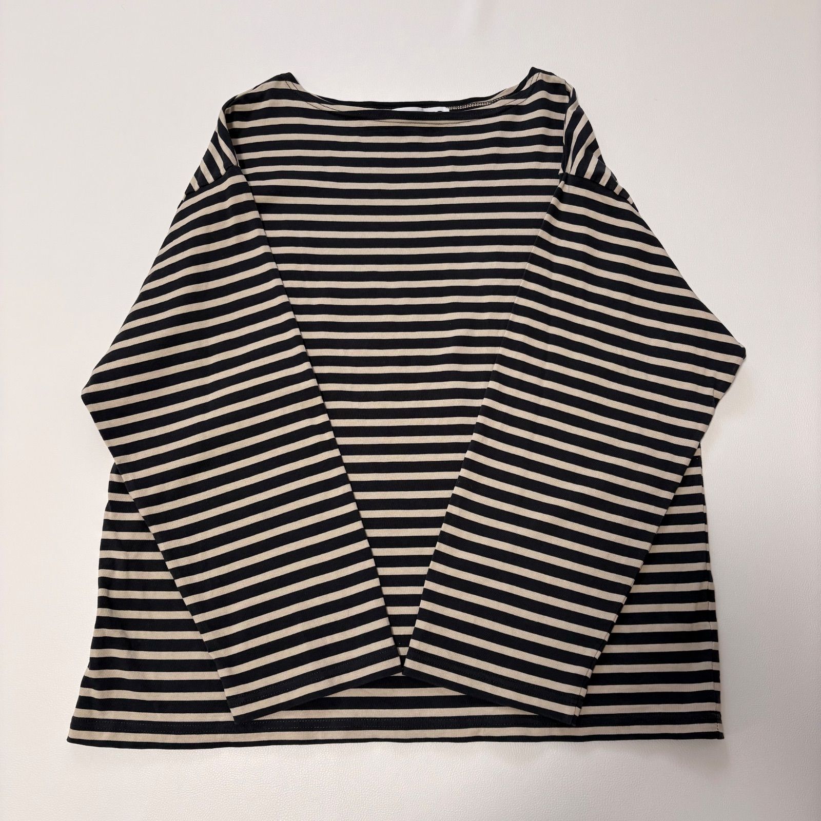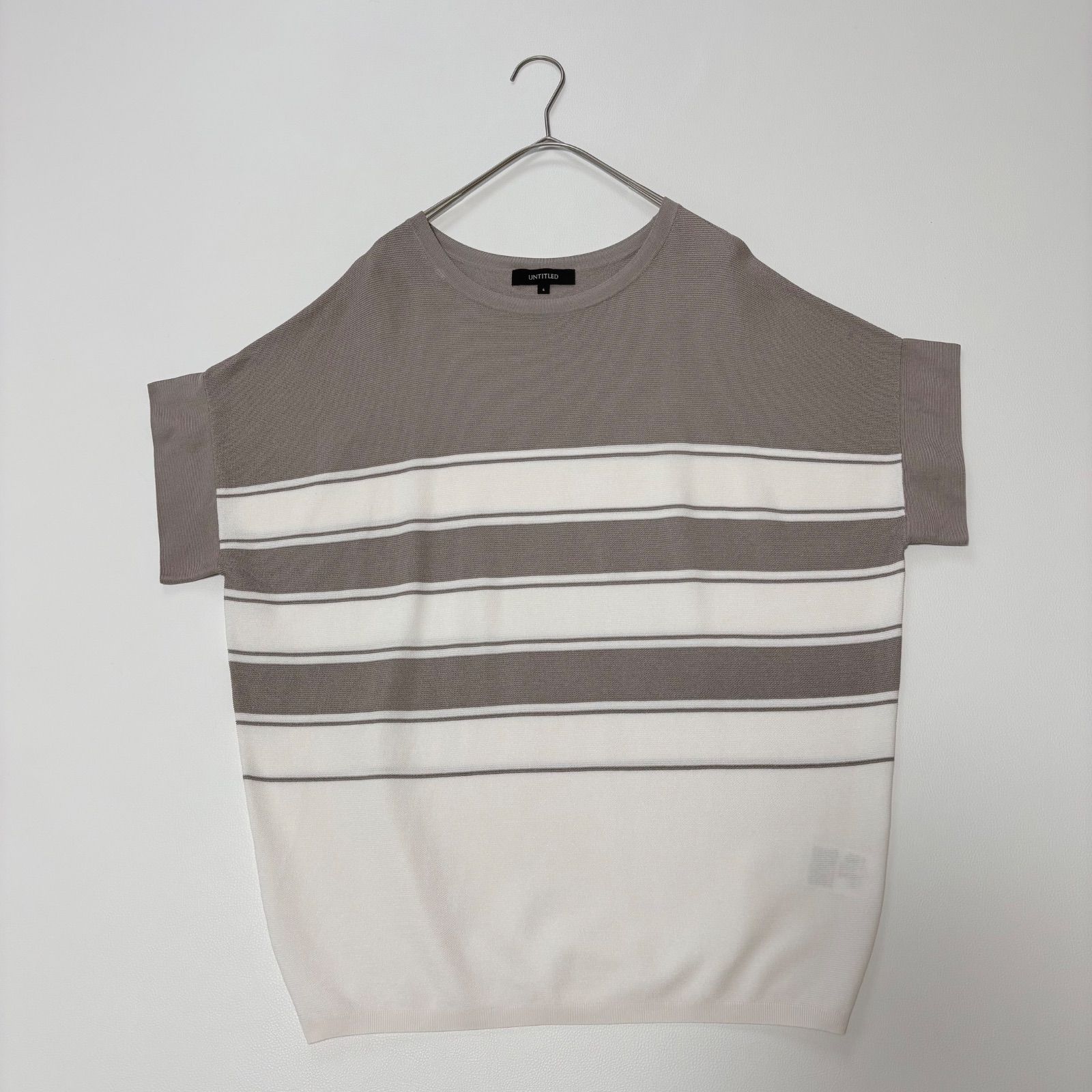 UNTITLED アンタイトル レーヨンストレッチ フレンチスリーブニット グレージュ ボーダー 4 XL 大きいサイズ きれいめ