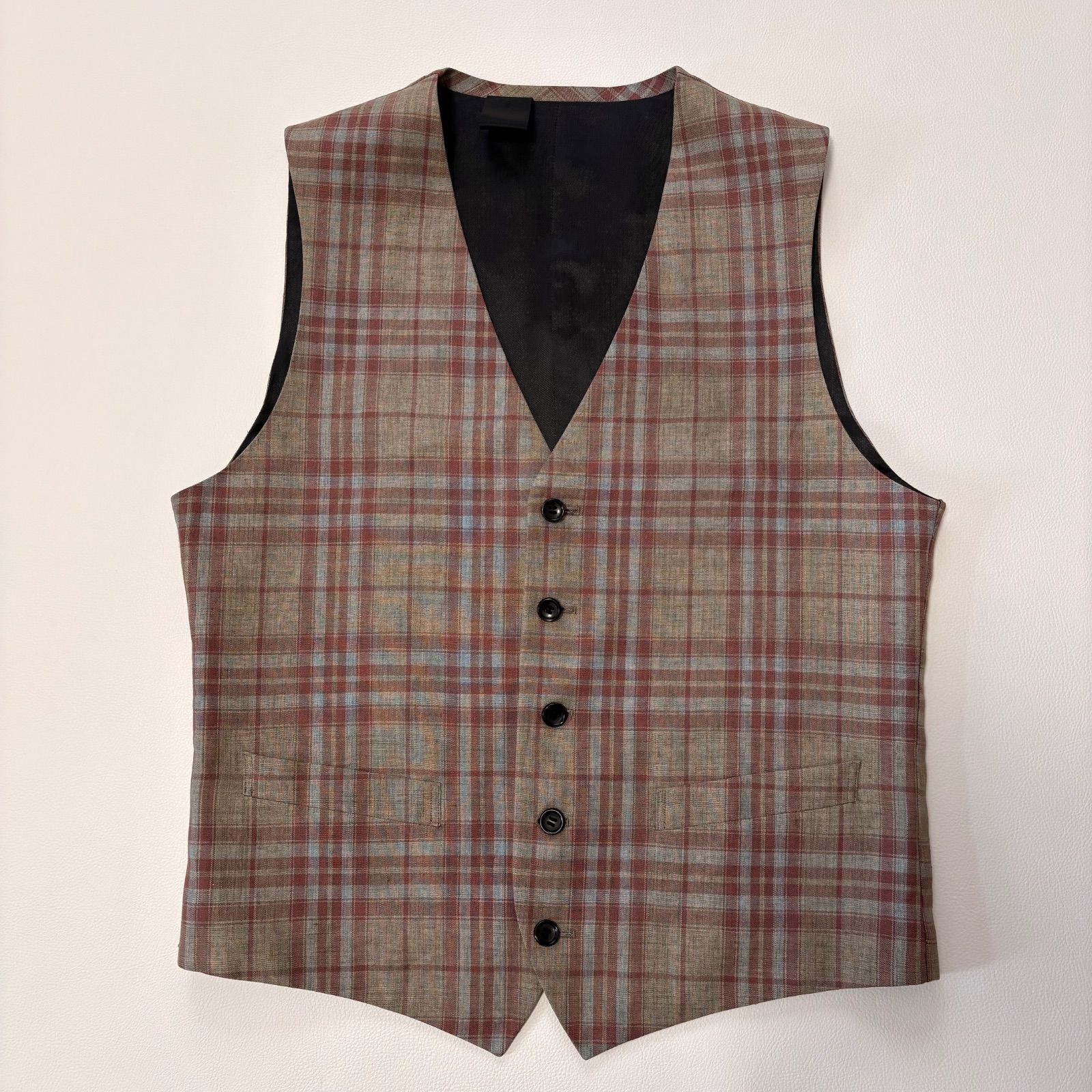 美品 N.HOOLYWOOD エヌハリウッド ベスト ジレ ベージュ レッド チェック 38 M メンズ きれいめ