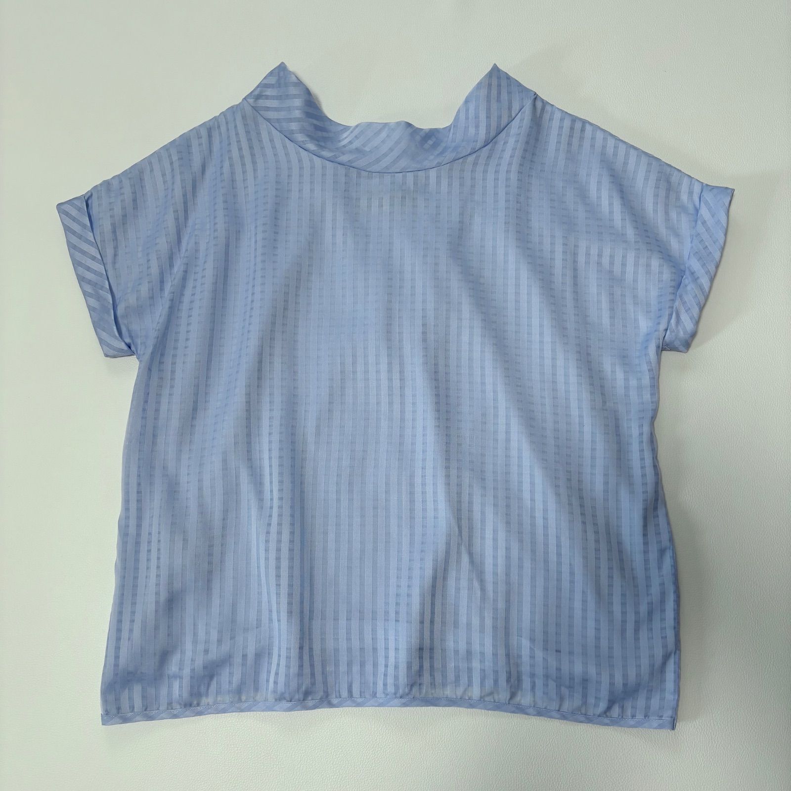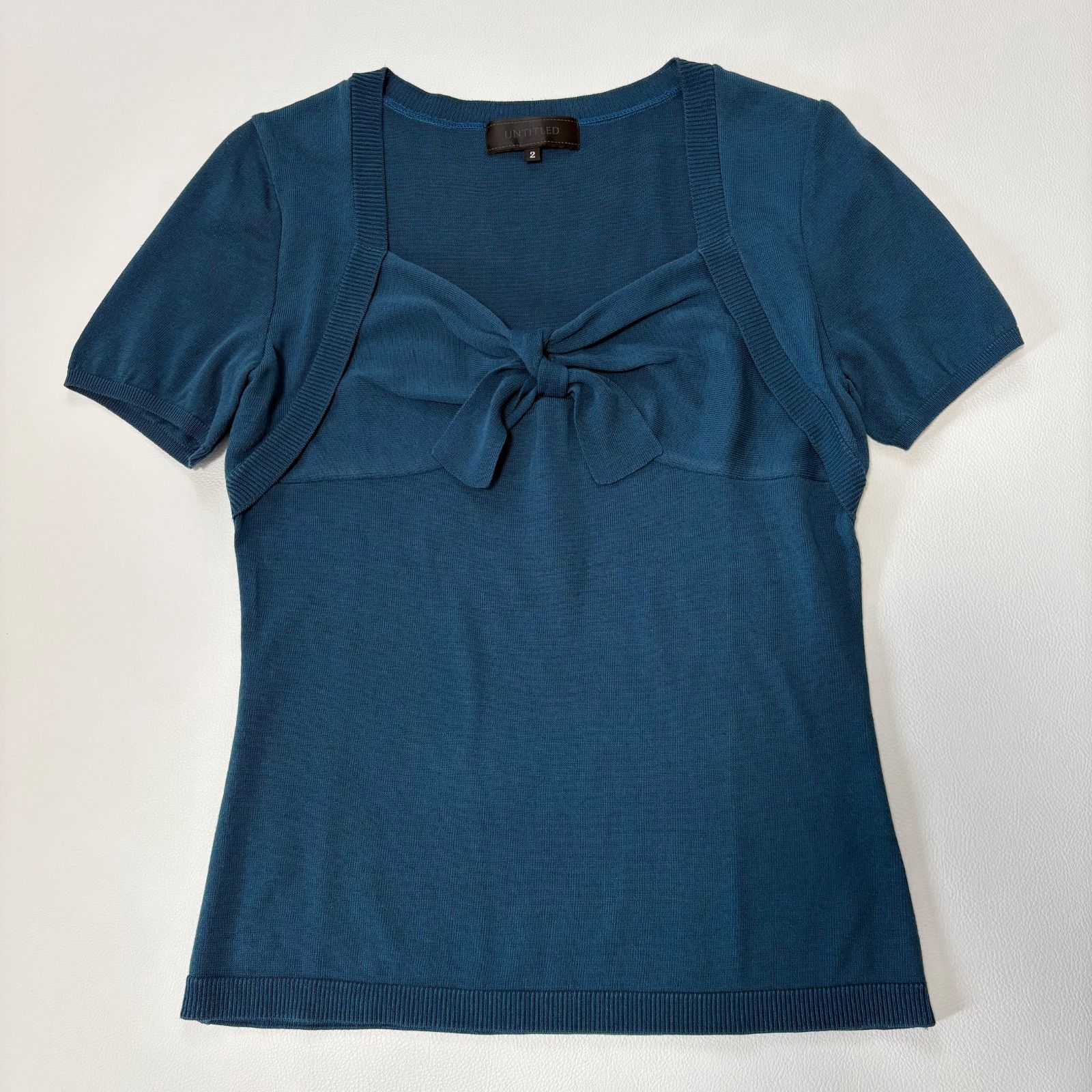 UNTITLED アンタイトル 半袖ニット リボンデザイン ブルー系 2 M相当 日本製 きれいめ