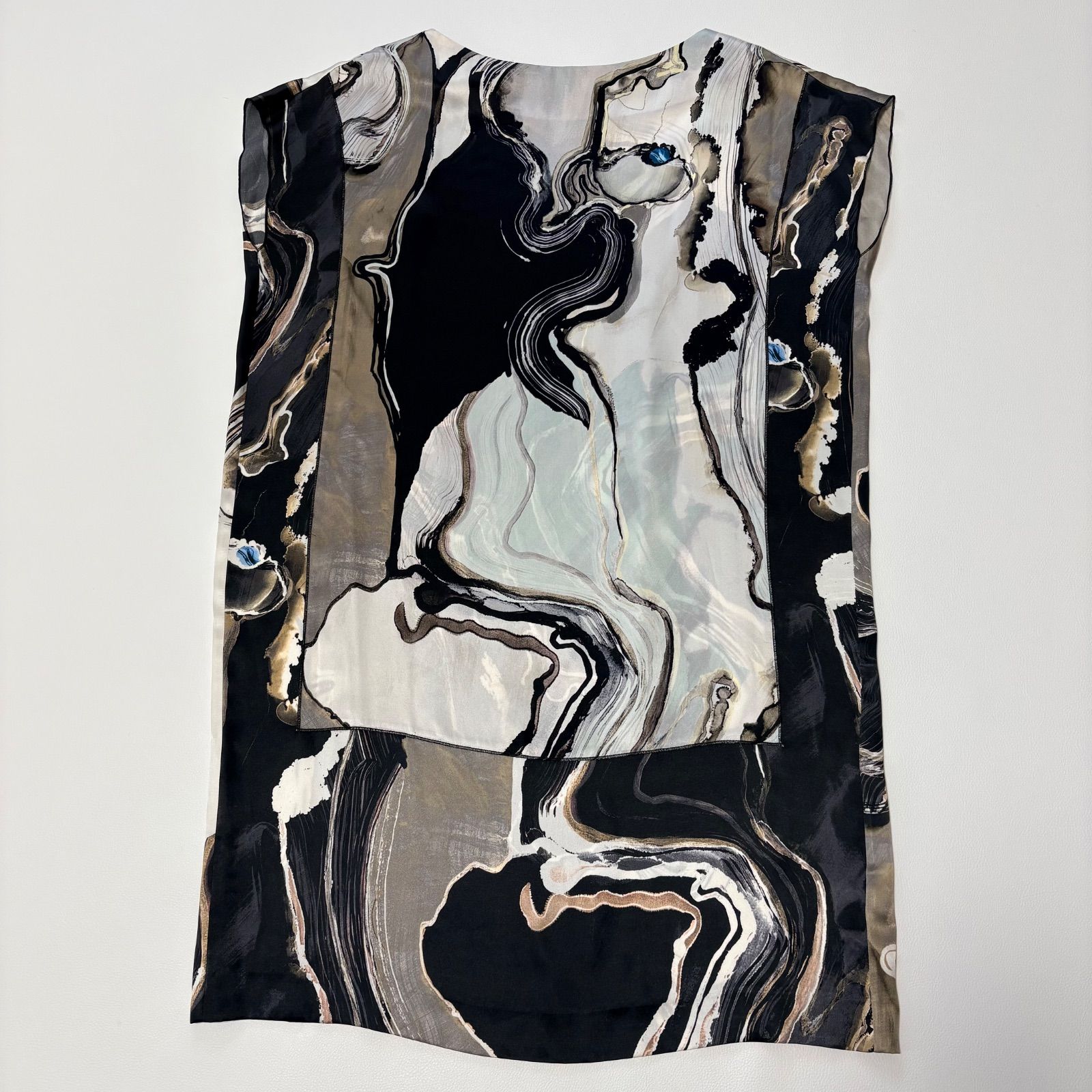 SYNCHRO CROSSINGS シンクロクロッシングズ ノースリーブブラウス チュニック ワンピース シルク100% 総柄 38 M相当 日本製 きれいめ