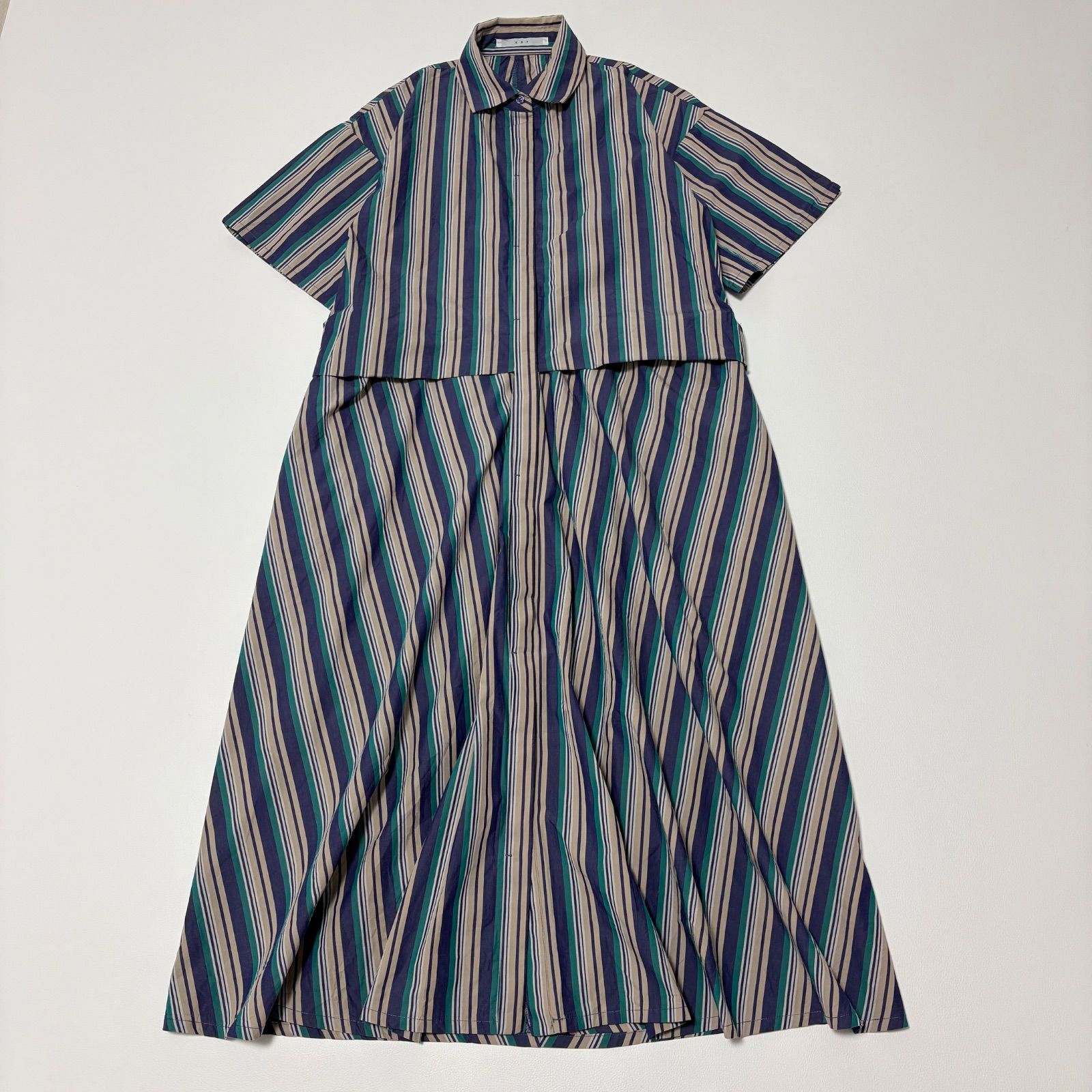 KBF ケービーエフ シャツワンピース ストライプ 半袖 ワンサイズ フリーサイズ きれいめ カジュアル