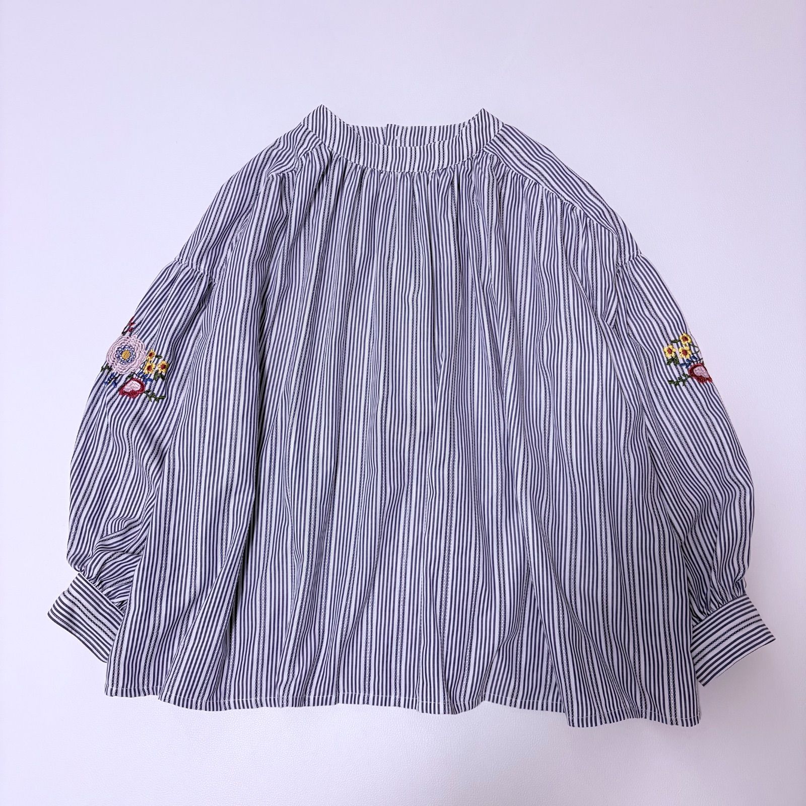 AS KNOW AS アズノウアズ 刺繍ブラウス ストライプ ボリュームスリーブ ゆったり きれいめ カジュアル