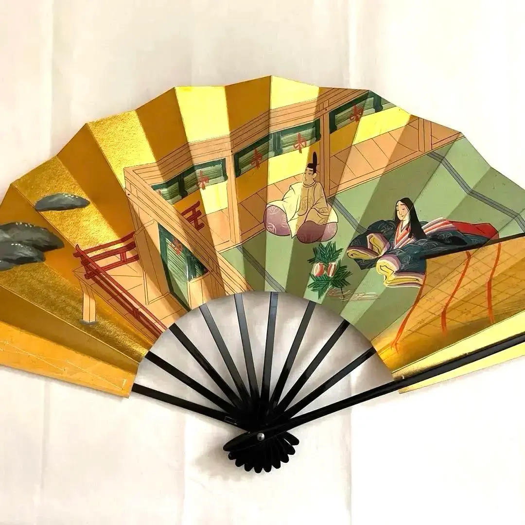 【新品】舞扇子 飾扇 金箔 手描き 十二単 梅 箱入り