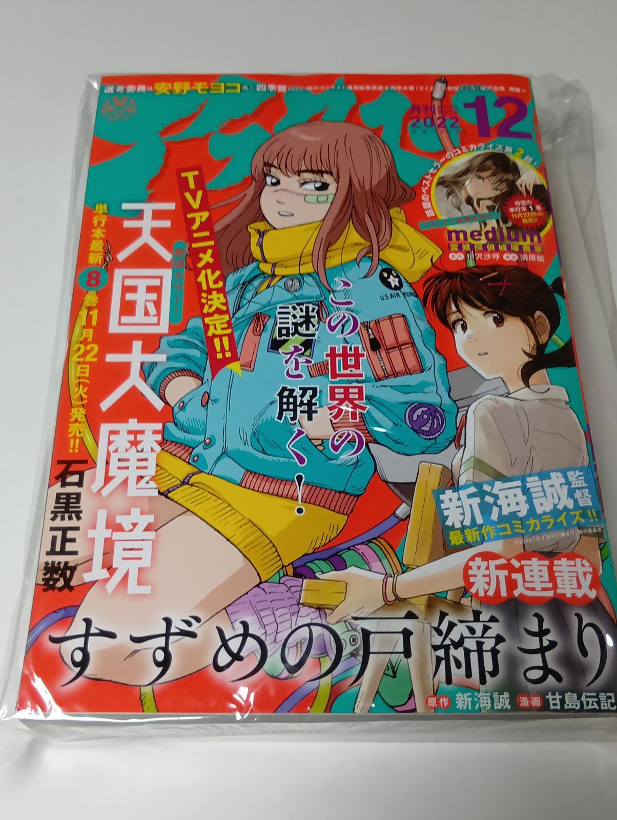 月刊アフタヌーン 2022 12月号 新連載 すずめの戸締まり(新海誠/甘島伝記) 表紙 天国大魔境