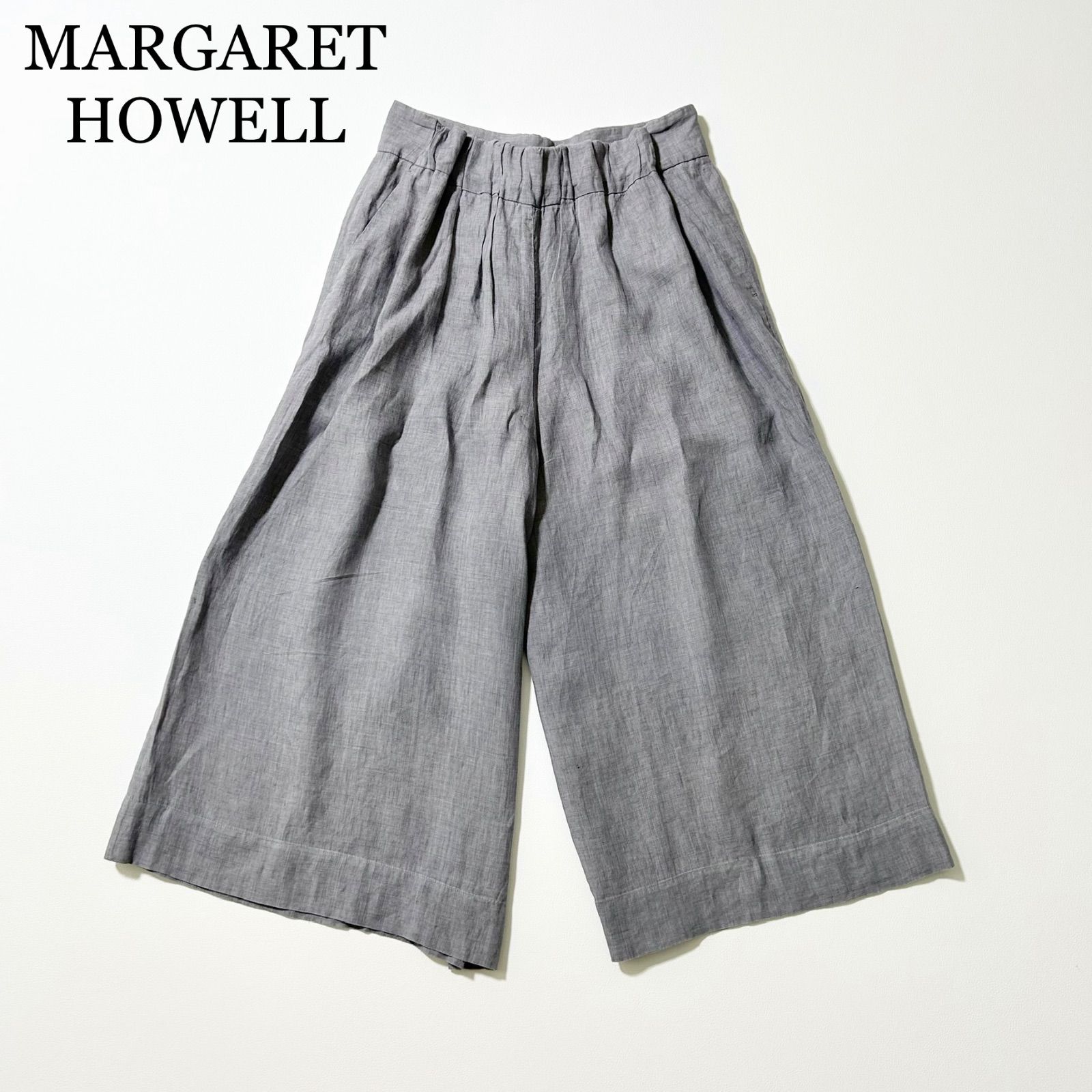 3480y美品 マーガレットハウエル リネン100% ワイドパンツ グレー L 日本製