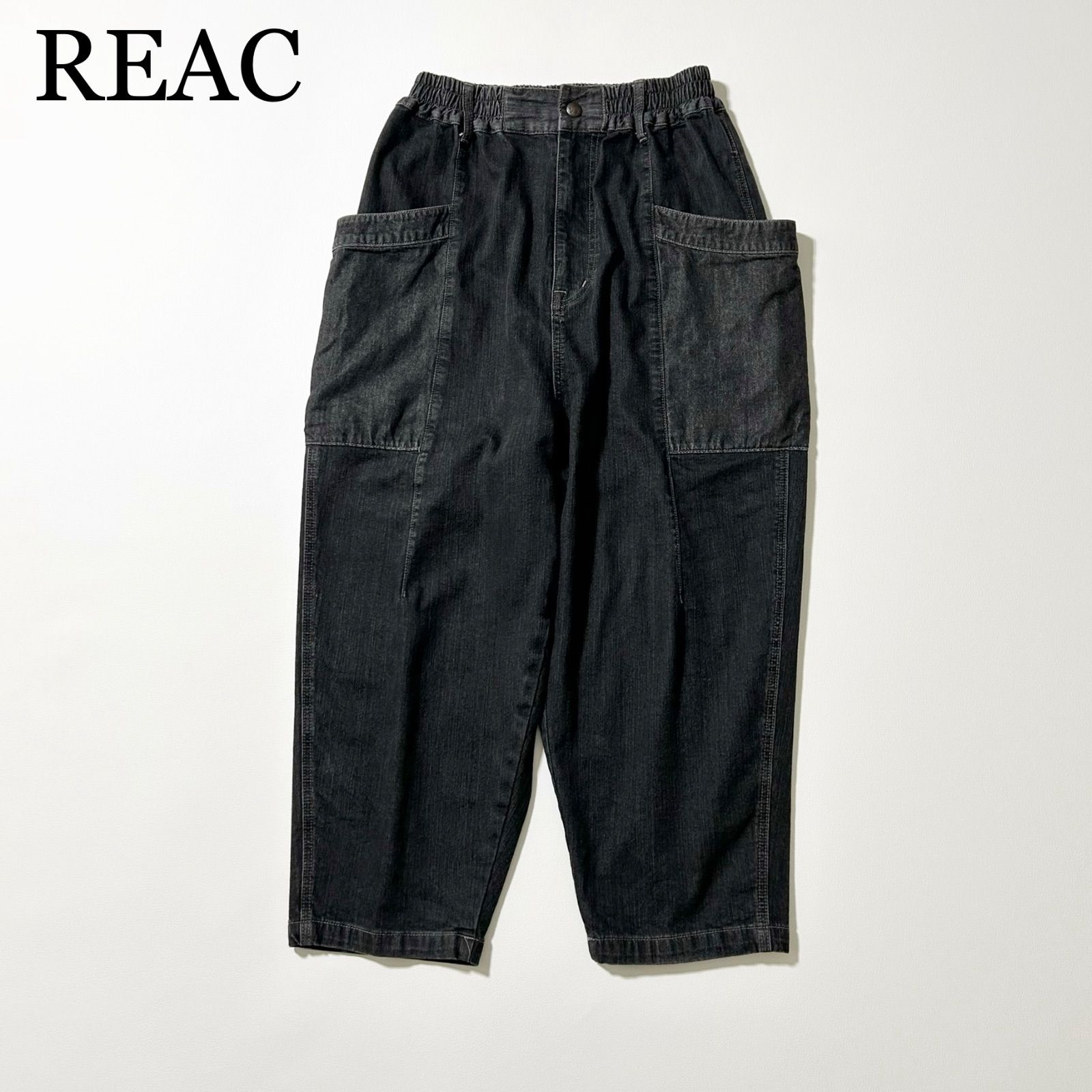 3481y美品 レアック カーブバレルレッグストレッチデニムパンツ 黒 M
