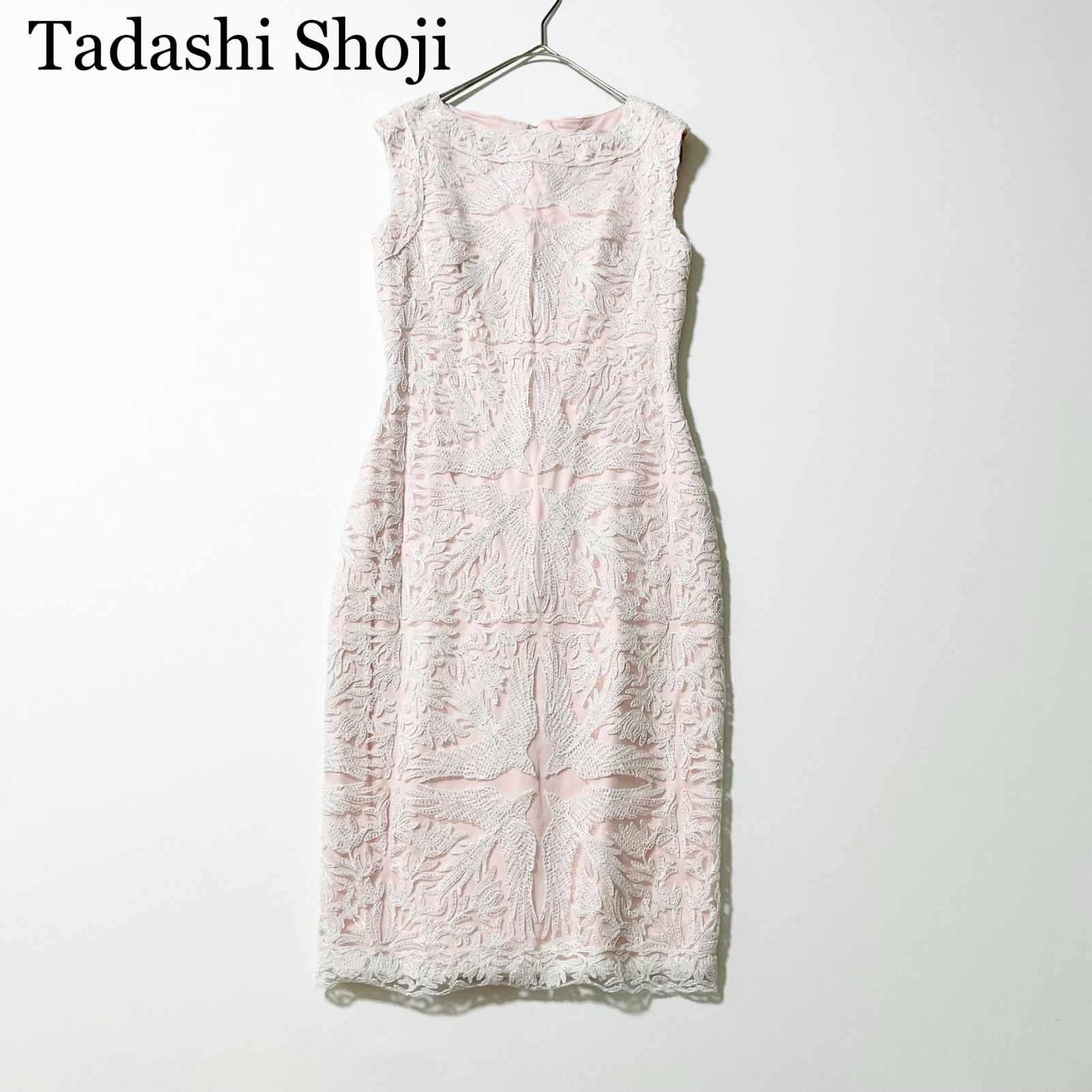3432y美品 タダシショージ 総レース刺繍ノースリーブワンピース ピンク 近年モデル