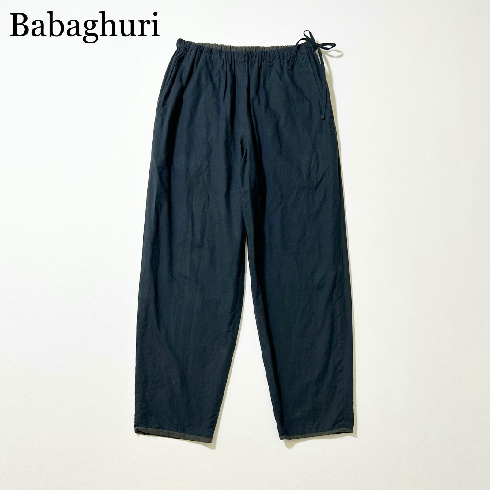 3463y美品 ババグーリ 2024リバーシブル コットンイージーパンツ 紺×モカ インド綿
