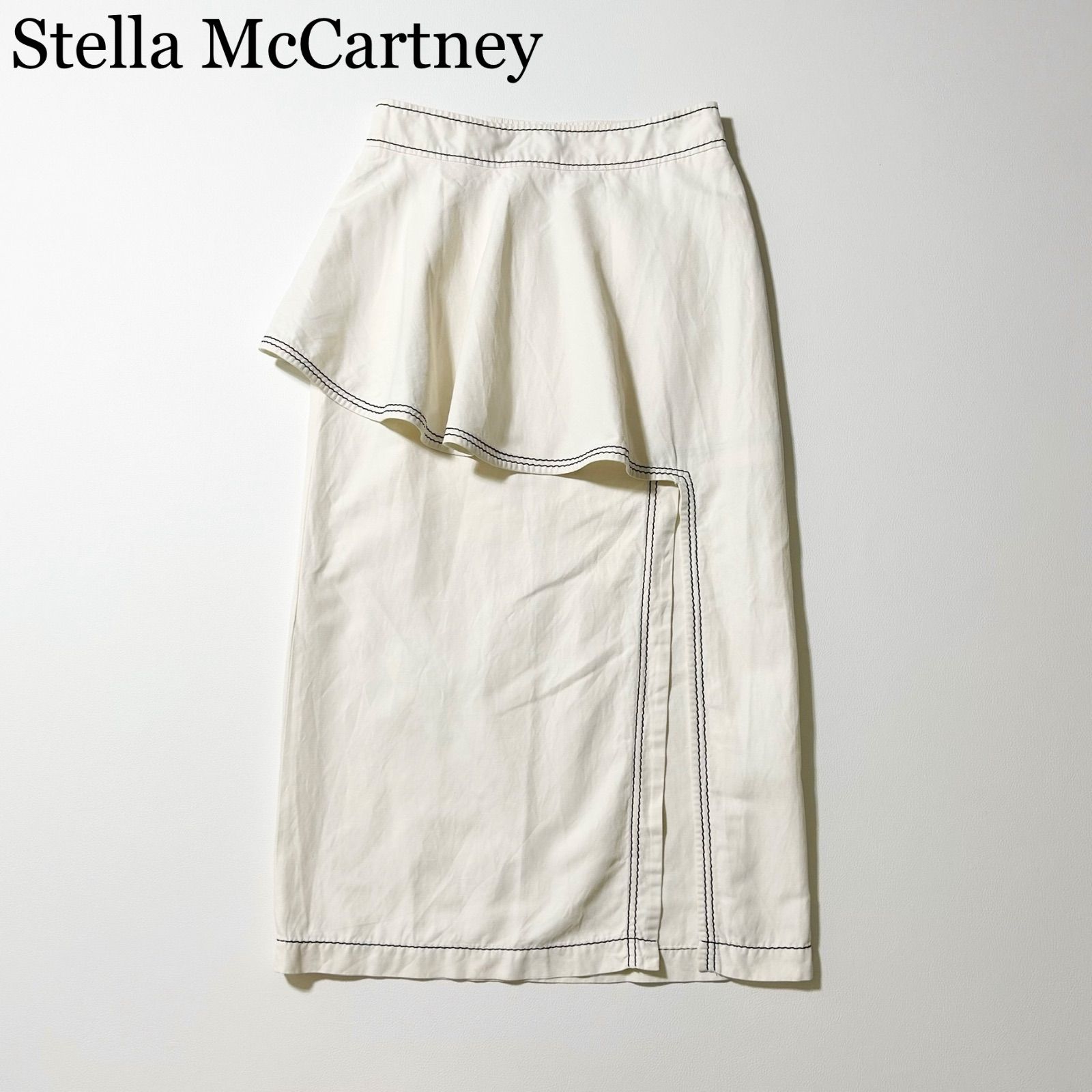 3472y新品 ステラマッカートニー リネン混 フリルロングタイトスカート XL 白