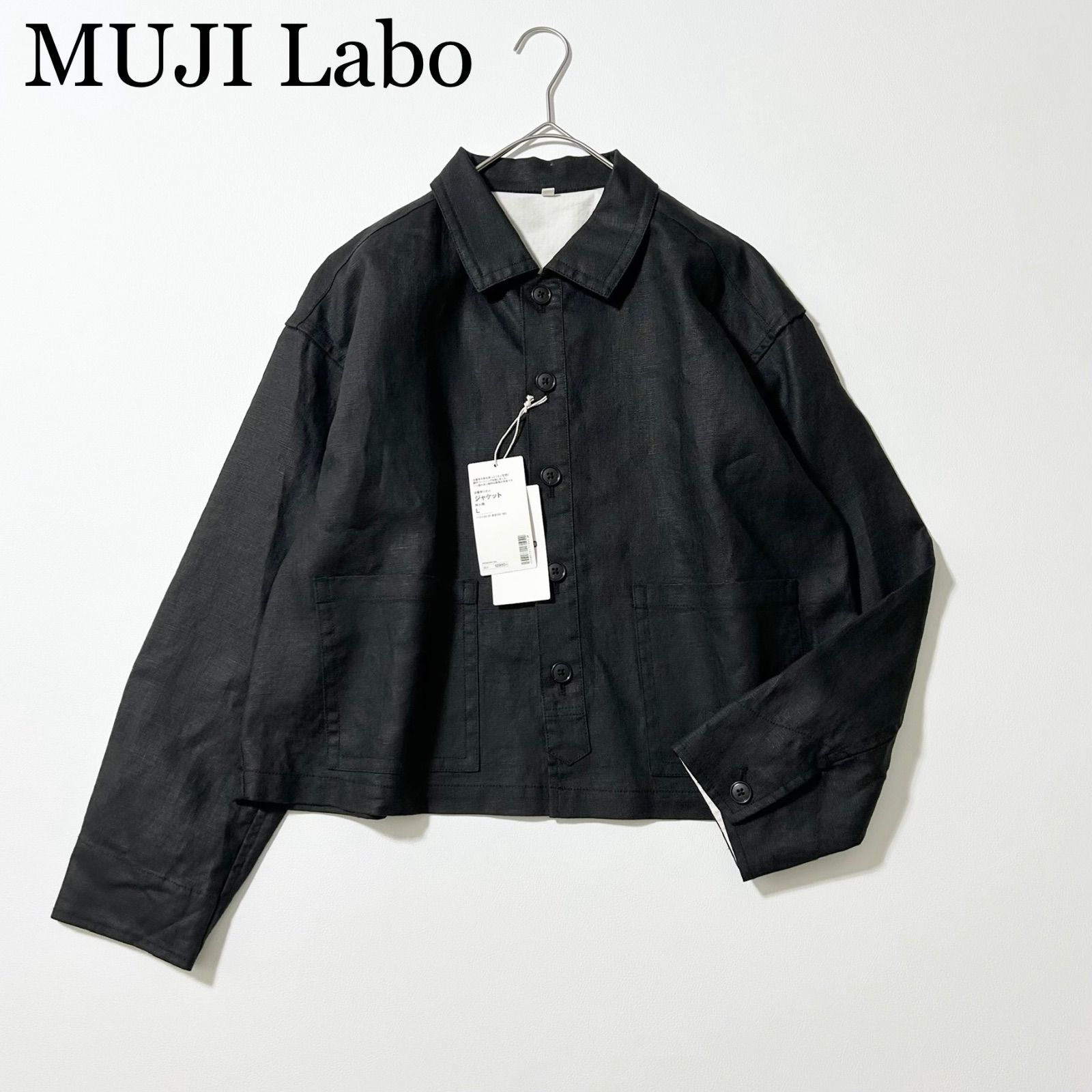 3456y新品 ムジラボ 長太番手リネンジャケット リネン100% 黒 L