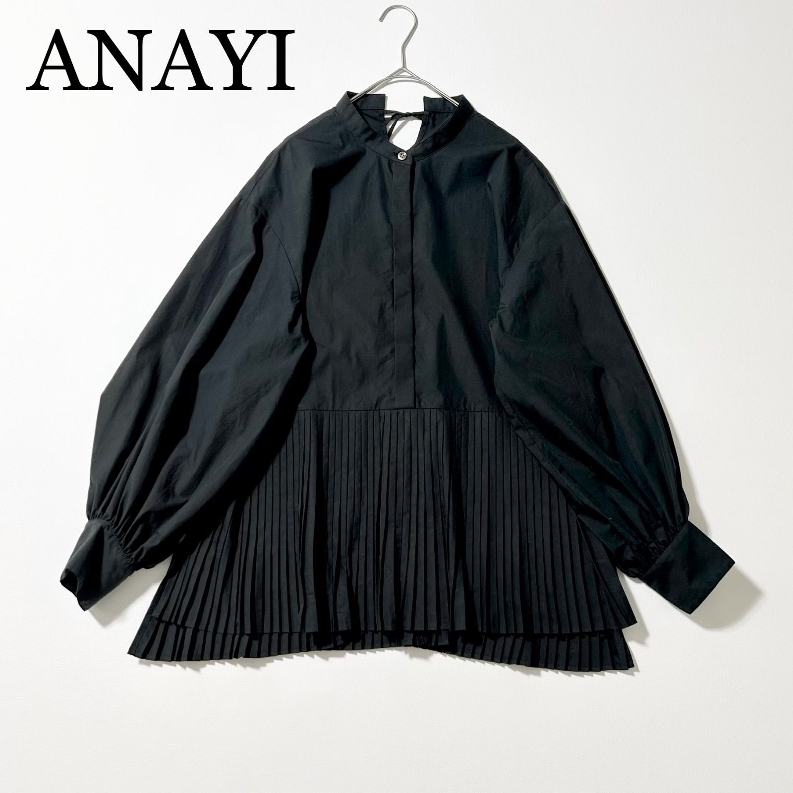 3420y美品 アナイ 近年 プリーツブラウス ボリューム袖黒 M 日本製