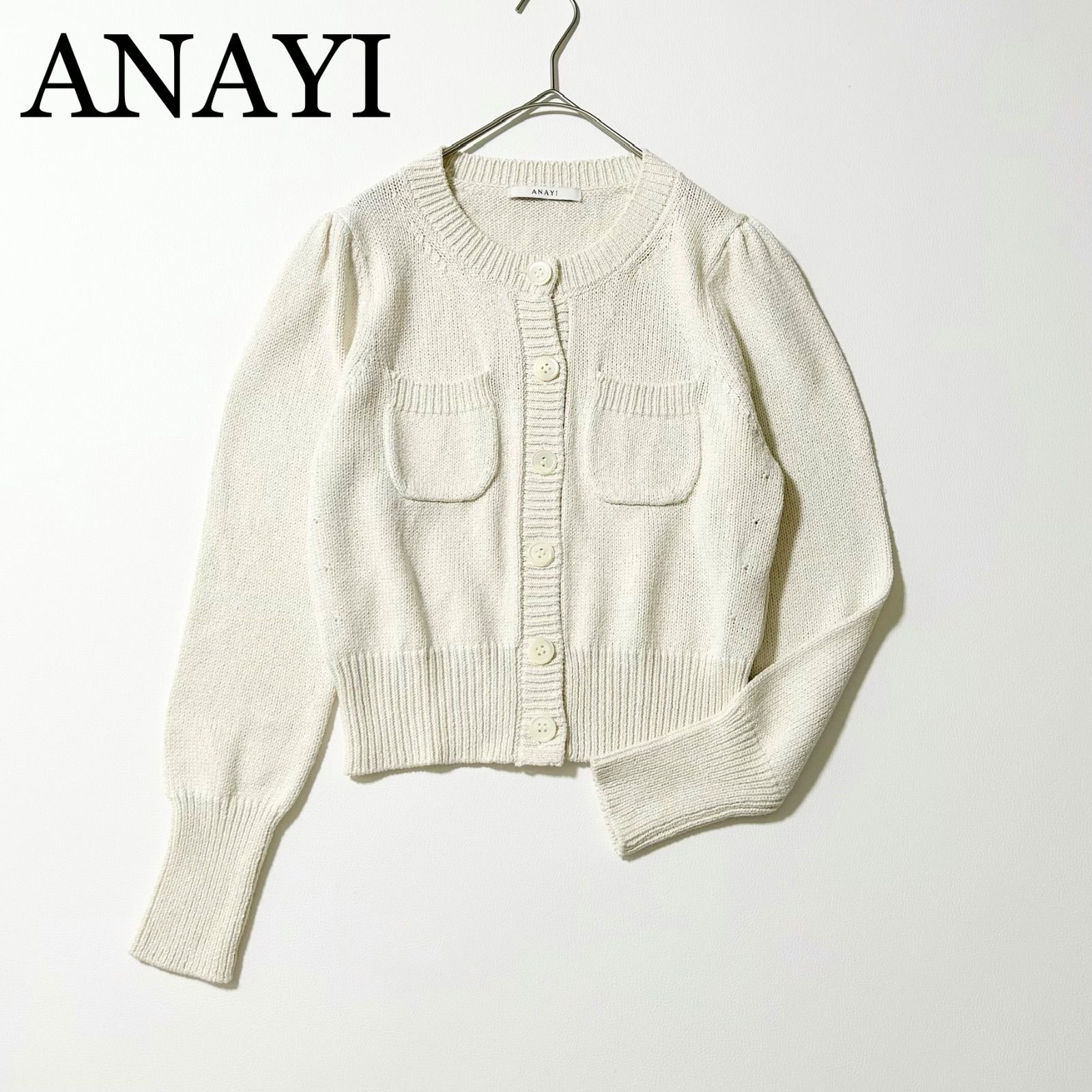 3470y美品 アナイ 23年クルーネック長袖ニットカーディガン 白 M