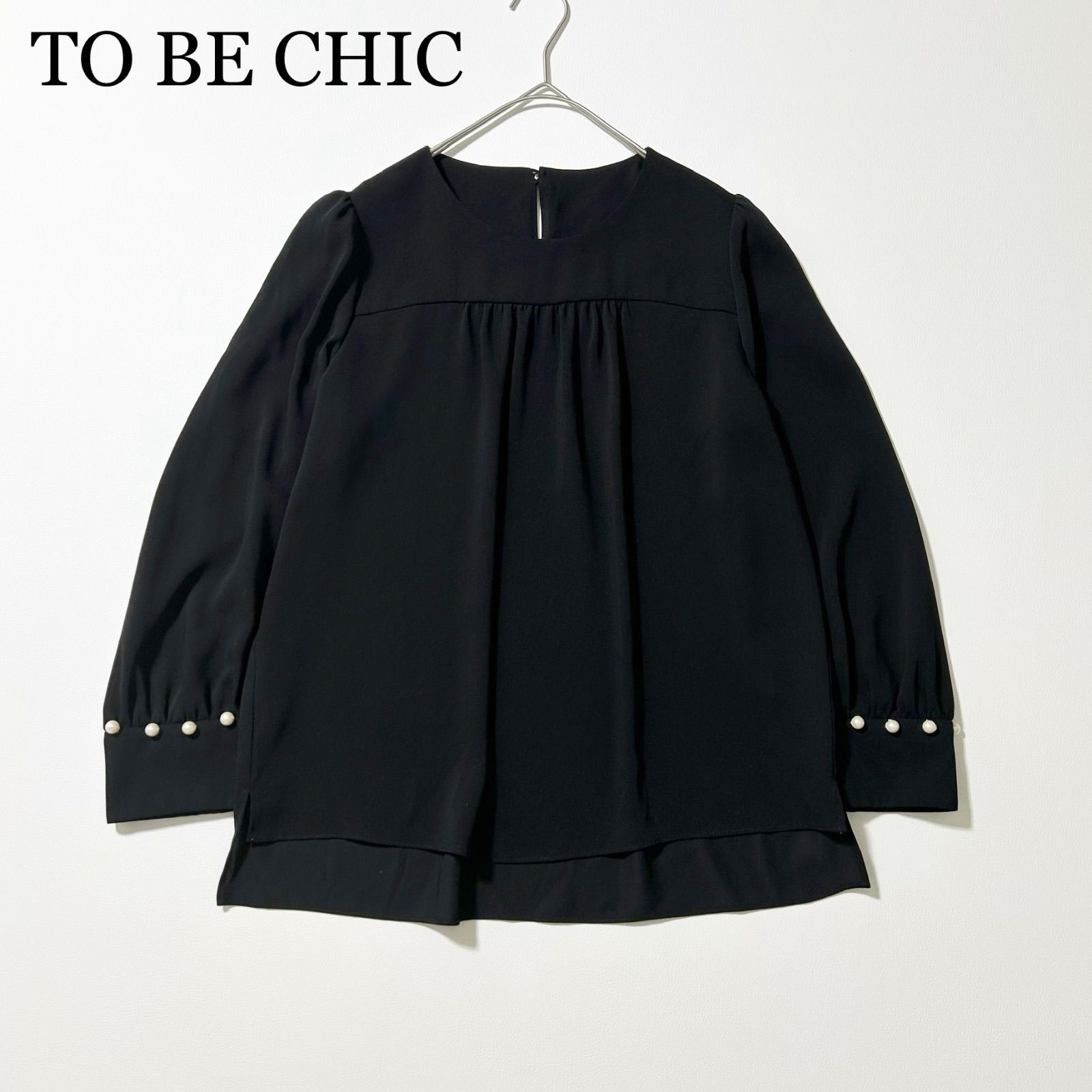 3469y美品 トゥービーシック パールギャザーブラウス 黒 L