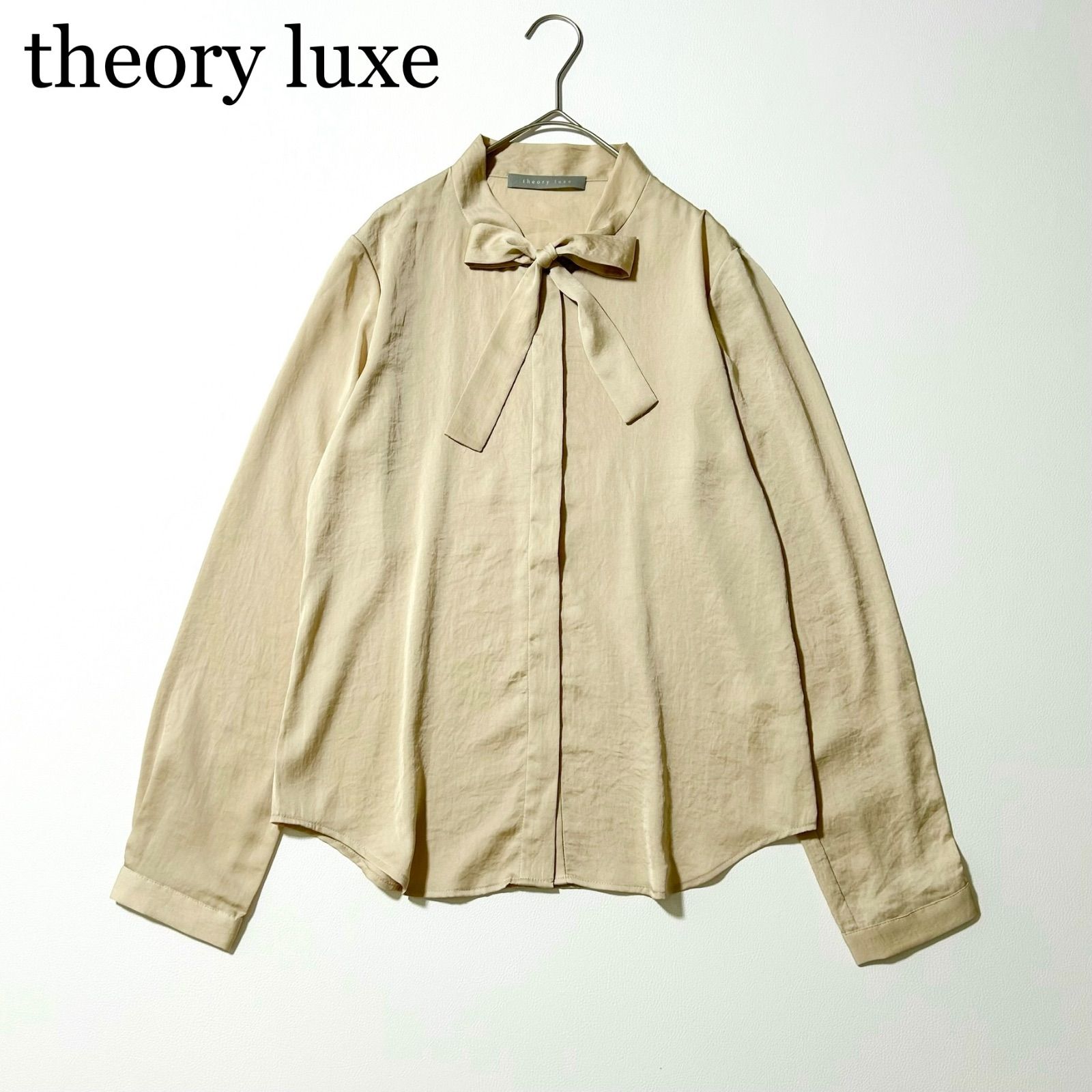 3430y美品 セオリーリュクス サテンボタンダウンブラウス ベージュ ポリエステル M