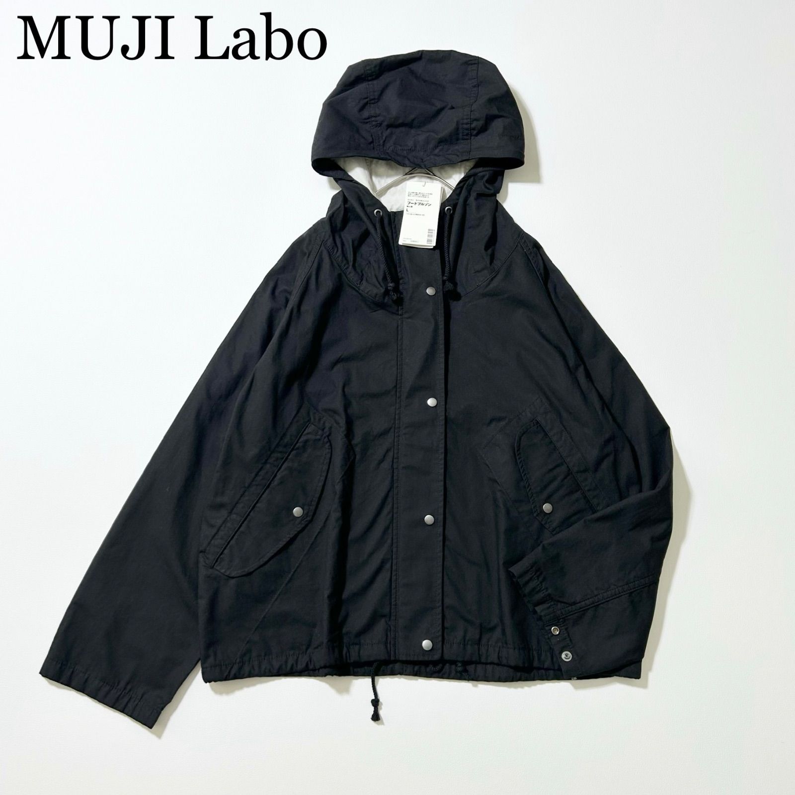 3457y新品 ムジラボ コットンライトキャンバスフードブルゾンマウンテンパーカー 綿 黒 L レディース