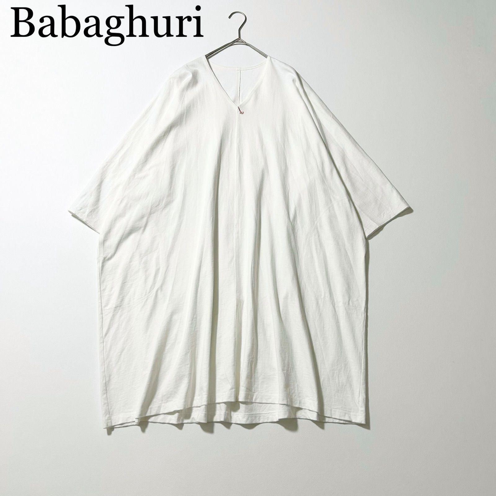3465y美品 ババグーリ オーバーサイズ刺繍 ロングTシャツ ワンピース 白