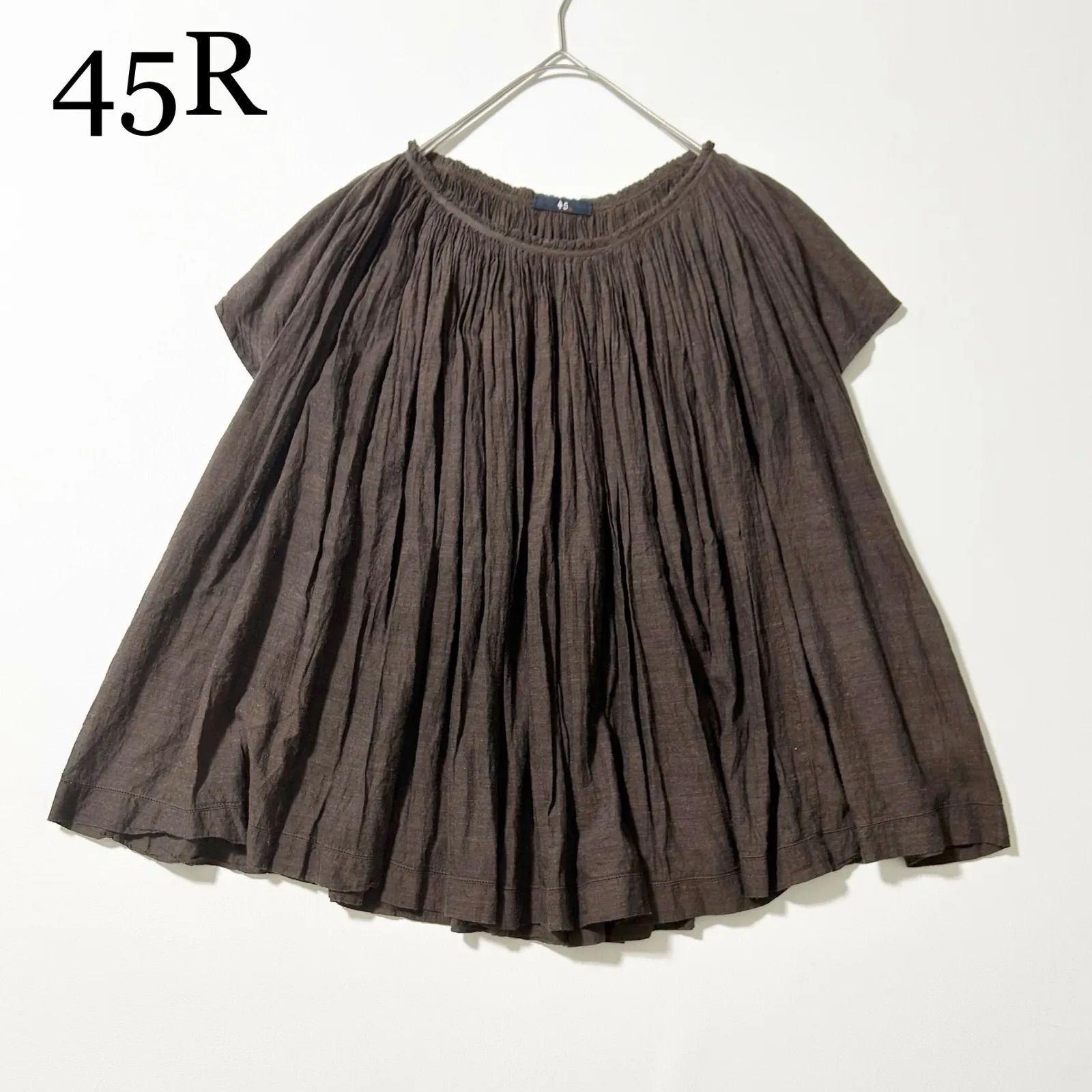 3452y美品 45R フェザーカディギャザーブラウス 茶色
