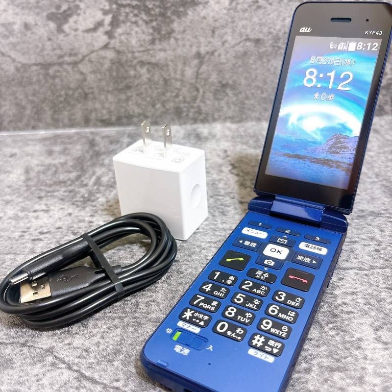 au KYF43 SIMフリー 白ロム ブルー
