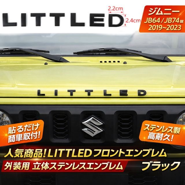 ジムニー JB64 JB74 フロントエンブレム LITTLED マットブラック3D形状 ステンレス 立体文字 貼るだけ簡単 カスタム 外装パーツ 高耐久仕様