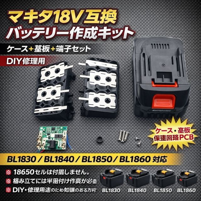 マキタ18V互換バッテリー作成キット ケース 基板 端子 保護回路 PCB付き DIY修理用 BL1830 BL1840 BL1850 BL1860対応 交換ケース修理交換用