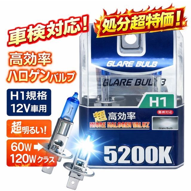 超特価 ブレイスグレアーバルブ H1 BE-305 5200K スーパーホワイト 12V車用 高効率ハロゲン 車検対応 60W→120Wクラス ヘッドライト 白色光