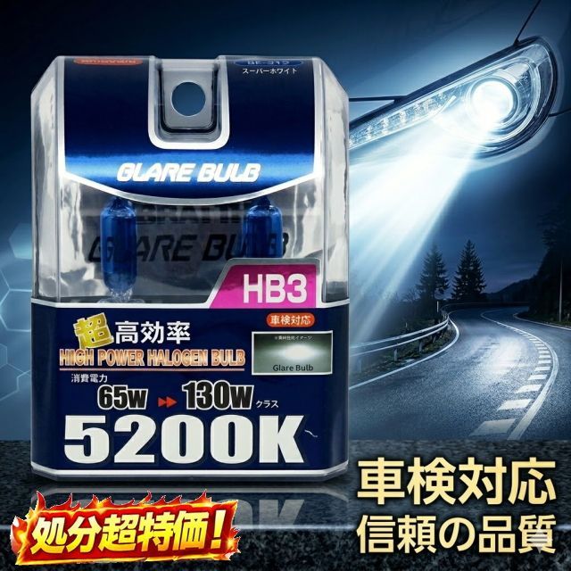 超特価ブレイスグレアーバルブ HB3 BE-312 5200K スーパーホワイト 12V車用 高効率ハロゲン 車検対応 65W→130Wクラス ヘッドライト 白色光