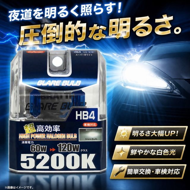 超特価ブレイスグレアーバルブ HB4 BE-313 5200K スーパーホワイト 12V車用 高効率ハロゲン 車検対応 60W→120Wクラス ヘッドライト 白色光
