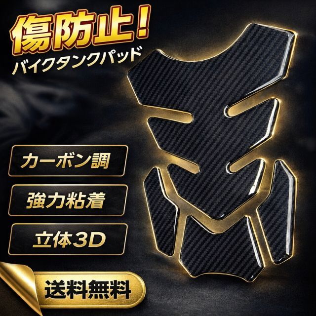 【高級3d・傷防止】バイク タンクパッド カーボン調B 汎用 強力粘着 防水 耐久 タンクプロテクター 簡単貼付 カスタム ステッカー ブラック