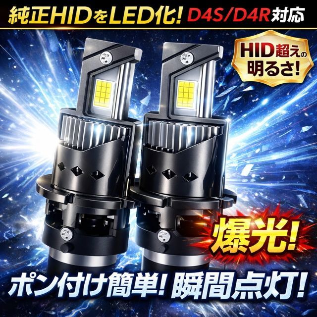 D4S/D4R LEDバルブ 純白 6000K 純正HIDをLED化 ポン付け簡単 高速点灯 爆光 純正交換 車検対応 ヘッドライト キセノンより明るい 2本セット