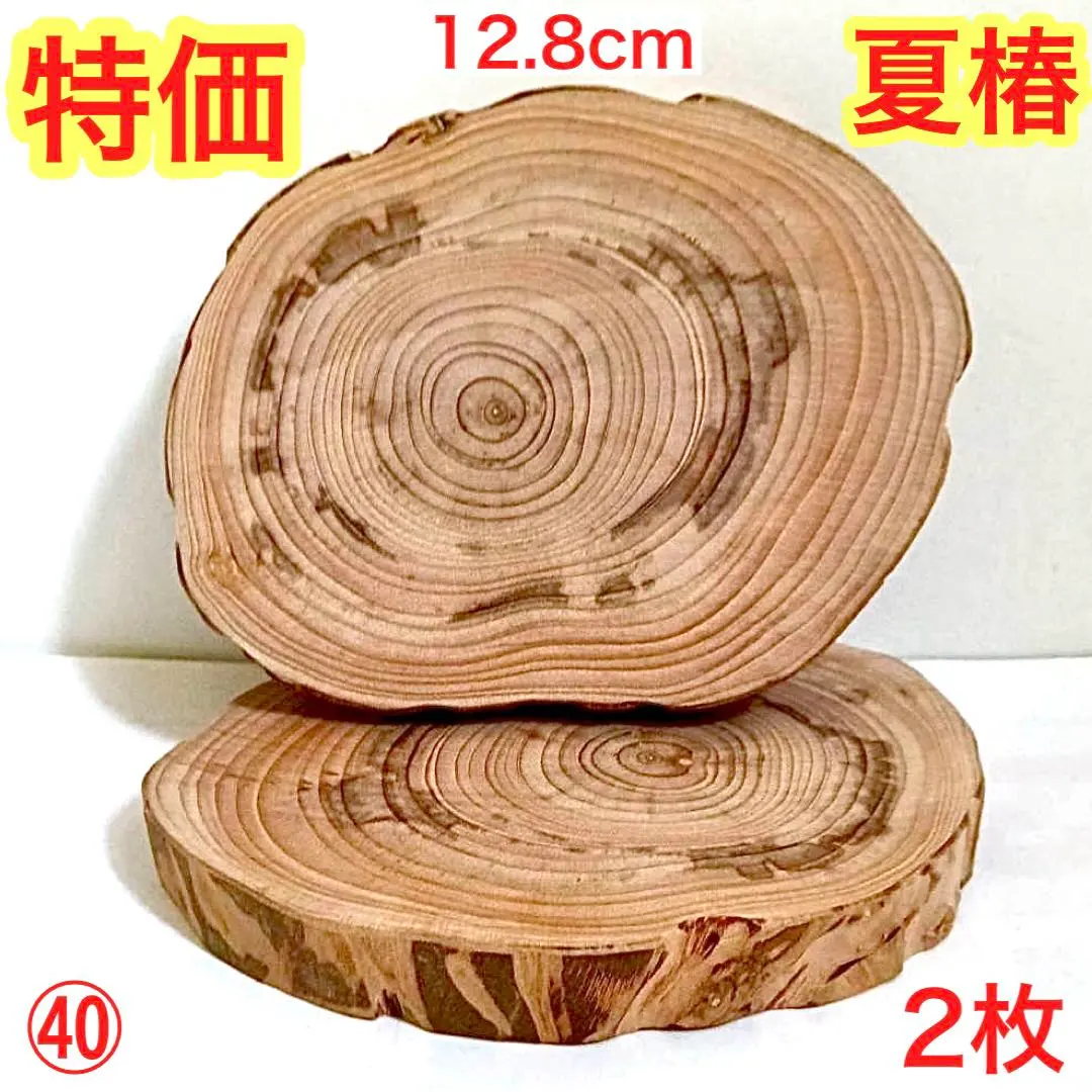 ㊶珍しい夏椿 輪切り 2枚 コースター 台座 木製プレート 花台 丸太切り株