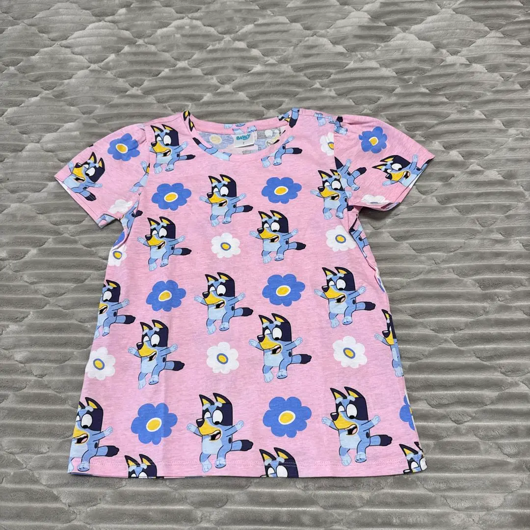 ブルーキャラクター 花柄 Tシャツ 130cm