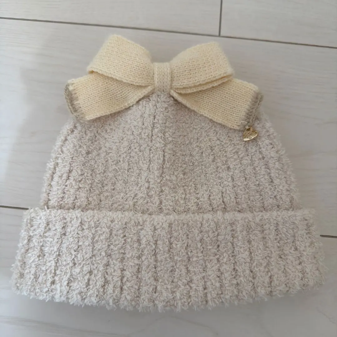 kp DECO リボン ニット帽 ベビー 帽子 ホワイト