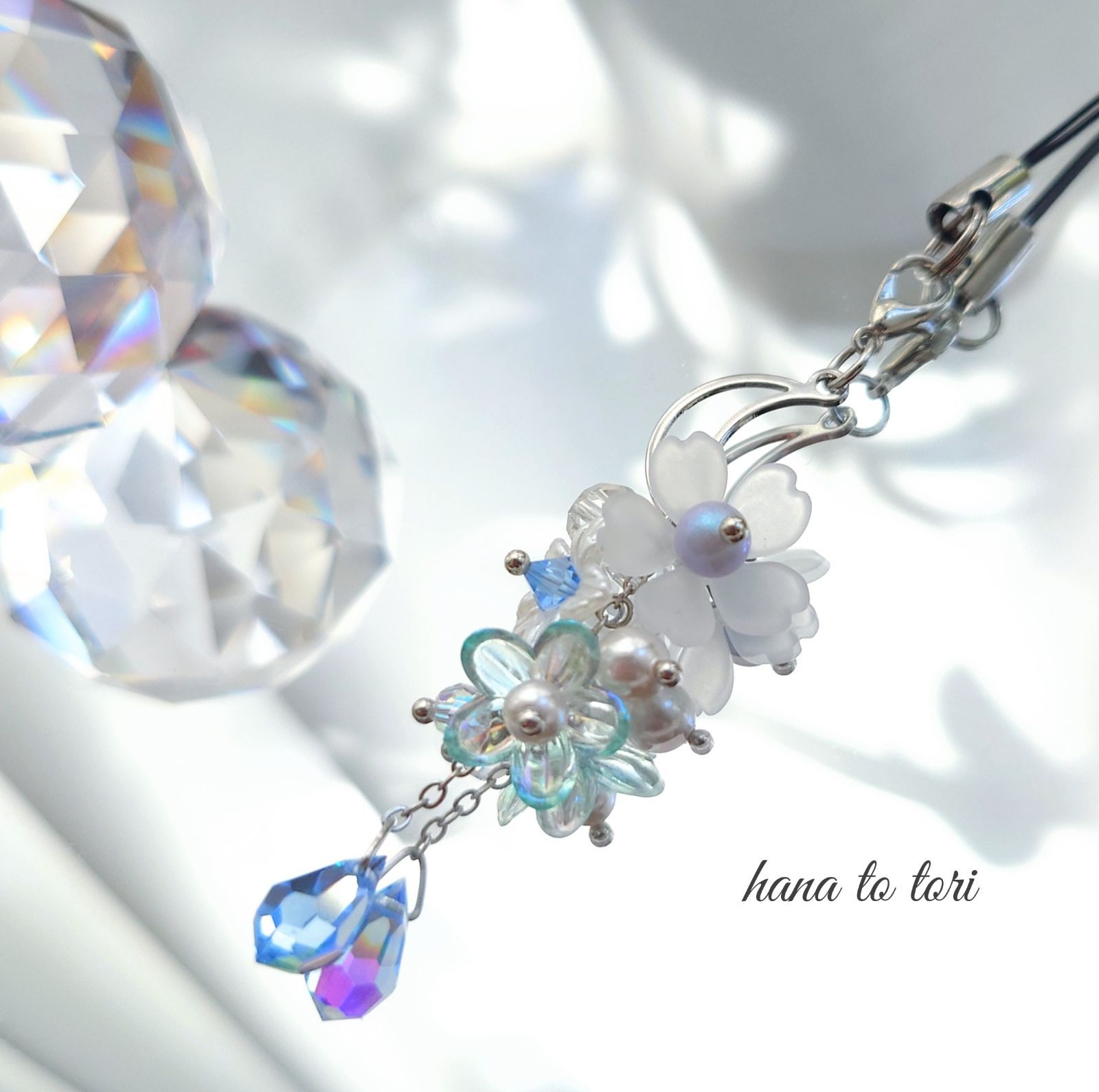 桜月夜のゆらゆらサンキャッチャーストラップ【ブルー】