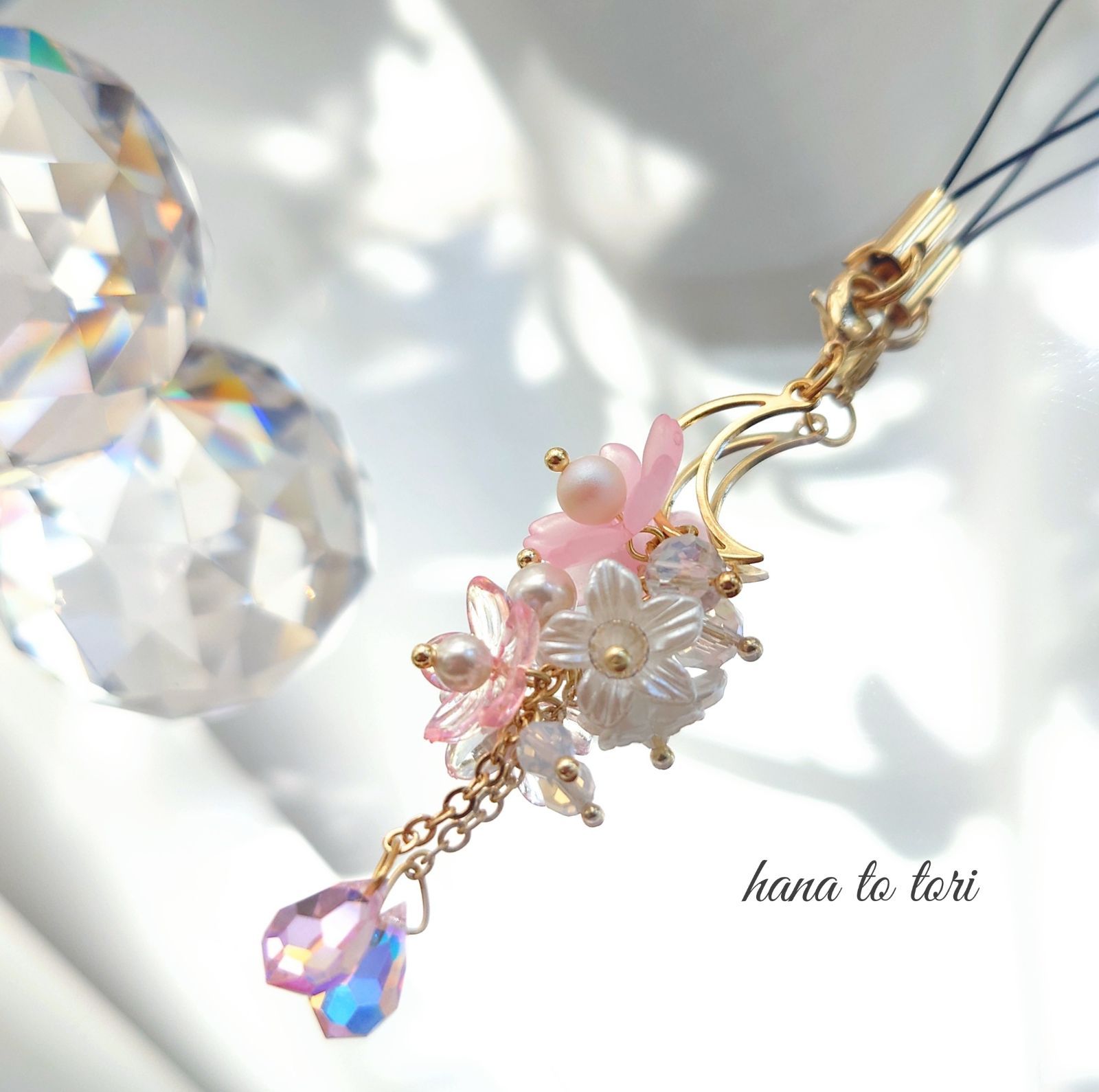 桜月夜のゆらゆら ミニサンキャッチャー ストラップ【ピンク】