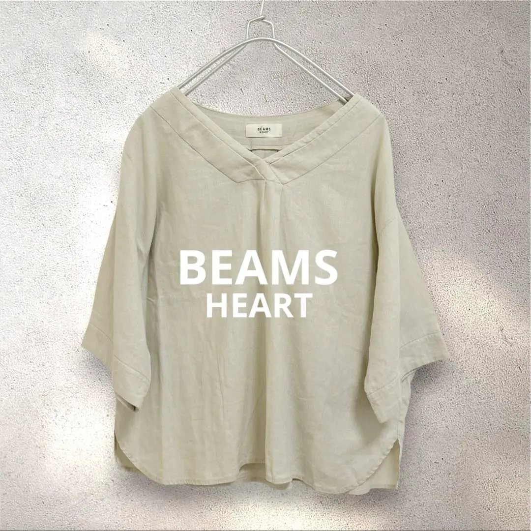 BEAMS HEART リネン混 ハーフスリーブブラウス 5分袖 ベージュ F