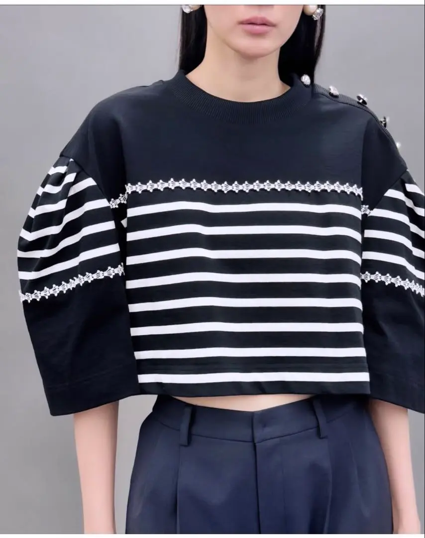 25SS アドニシス Adonisis メタルボタンマリンボーダーショートTOP