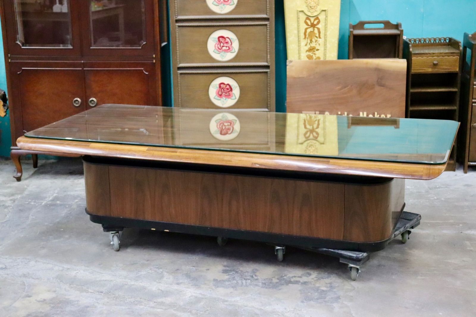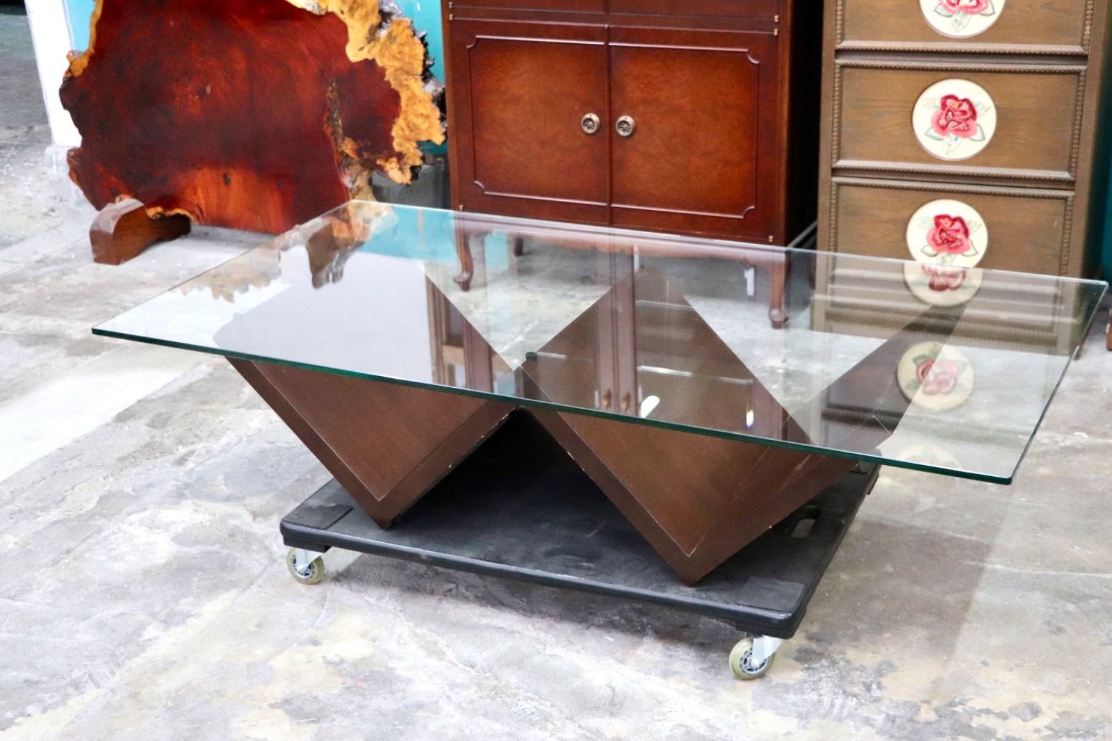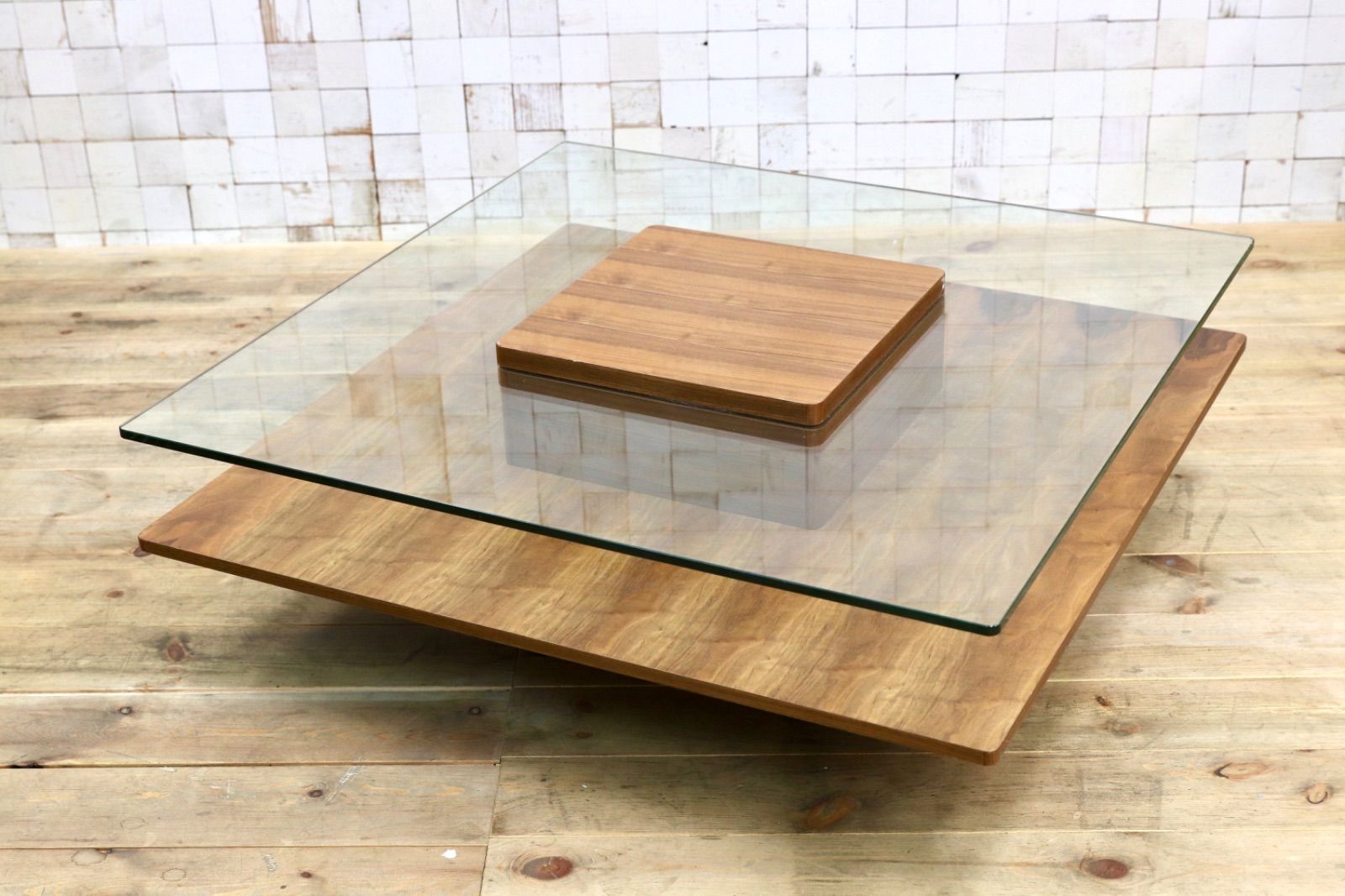 GMJK15○ARMONIA / アルモニア HK22A Corte ガラス センターテーブル ウォールナット系 強化ガラス ローテーブル モダン 定価約6万 展示品