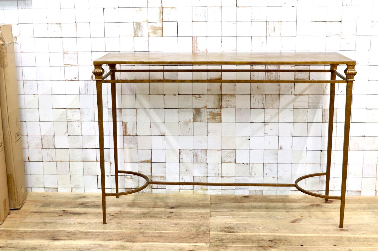 GMJK26B○アメリカ製 ヴィンテージ コンソールテーブル アイアン スチール ゴールド仕上げ サイドテーブル エントランス 店舗什器