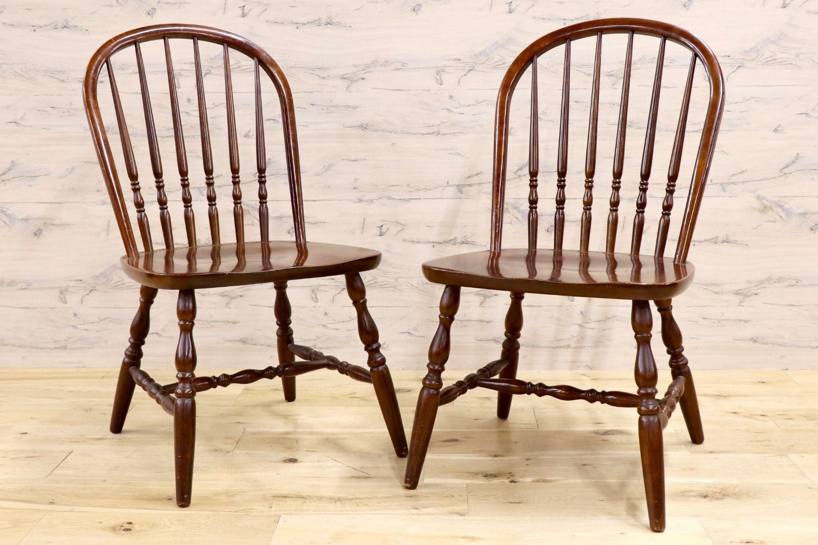 GMJS19A○柏木工 / KASHIWA ダイニングチェア 2脚セット ウィンザーチェア 椅子 レトロ カントリー アンティーク ヴィンテージ 国産家具
