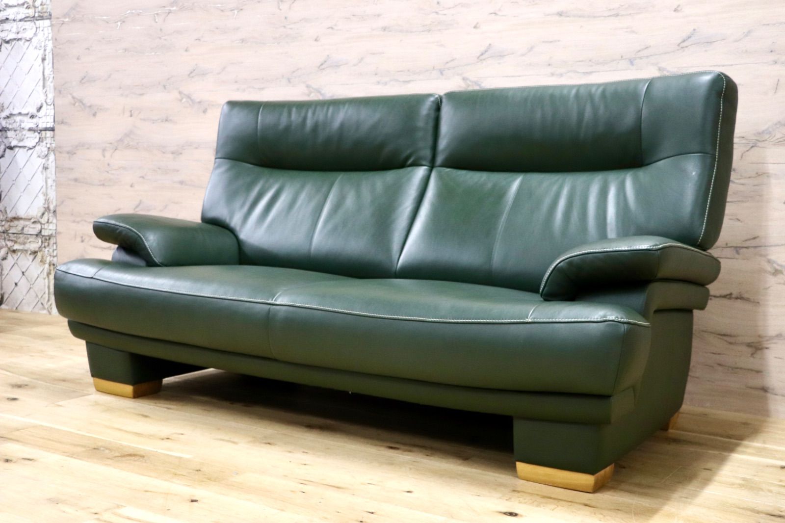 GMJS18○karimoku / カリモク ZT8612 本革 グリーン ハイバックソファ 2人掛け オーク材 モールドウェーブ 日本製 約35万