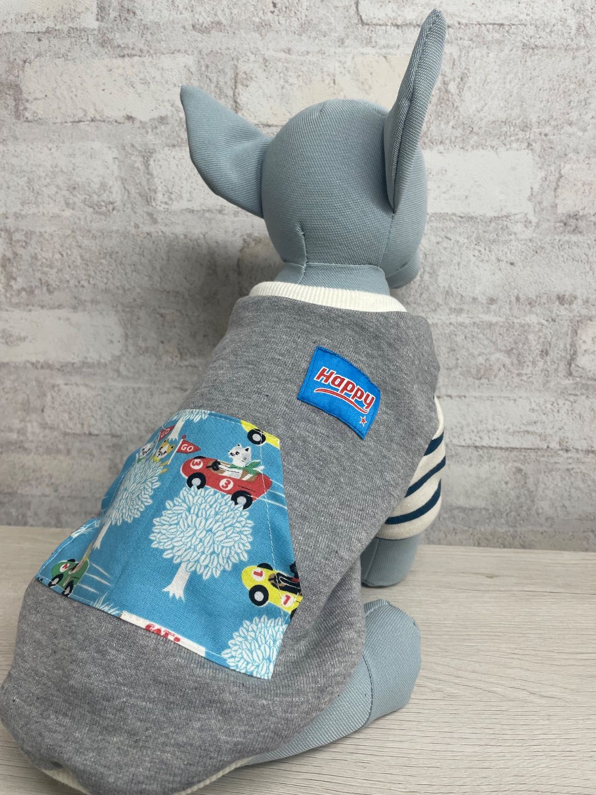 新品 ハンドメイド トレーナー ロンT 長袖 犬服 犬の服 ボーダー 猫 サーキット タグ ポケット
