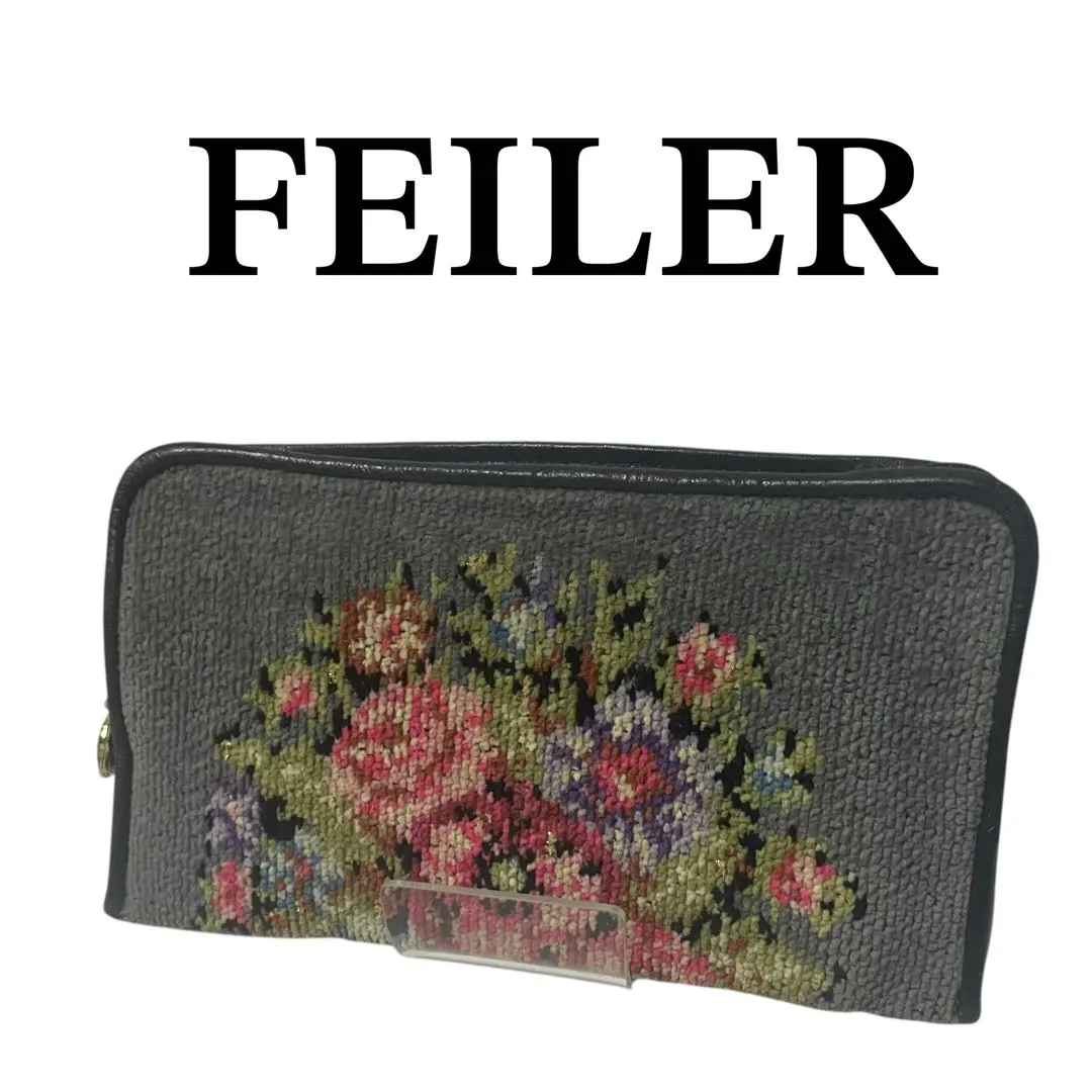 【極美品】FEILER(フェイラー) - グレー×花柄 小銭入れ