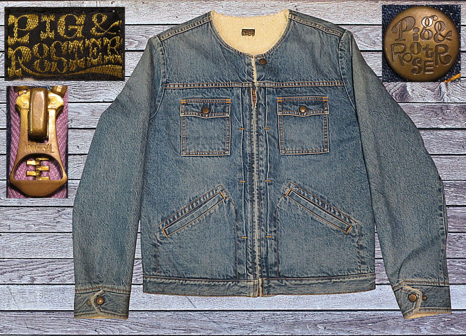 ✅️ 参考上代45000+税 Pig&Rooster ピッグアンドルースター ノーカラー デニムジャケット インナー ボアジャケット 保温性 UNIVERSALジッパー